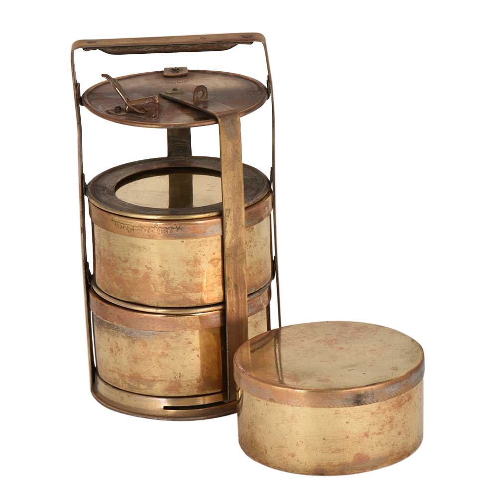 • Functional  Brass Tiffin Box With Three Containers And Thick Locking Frame