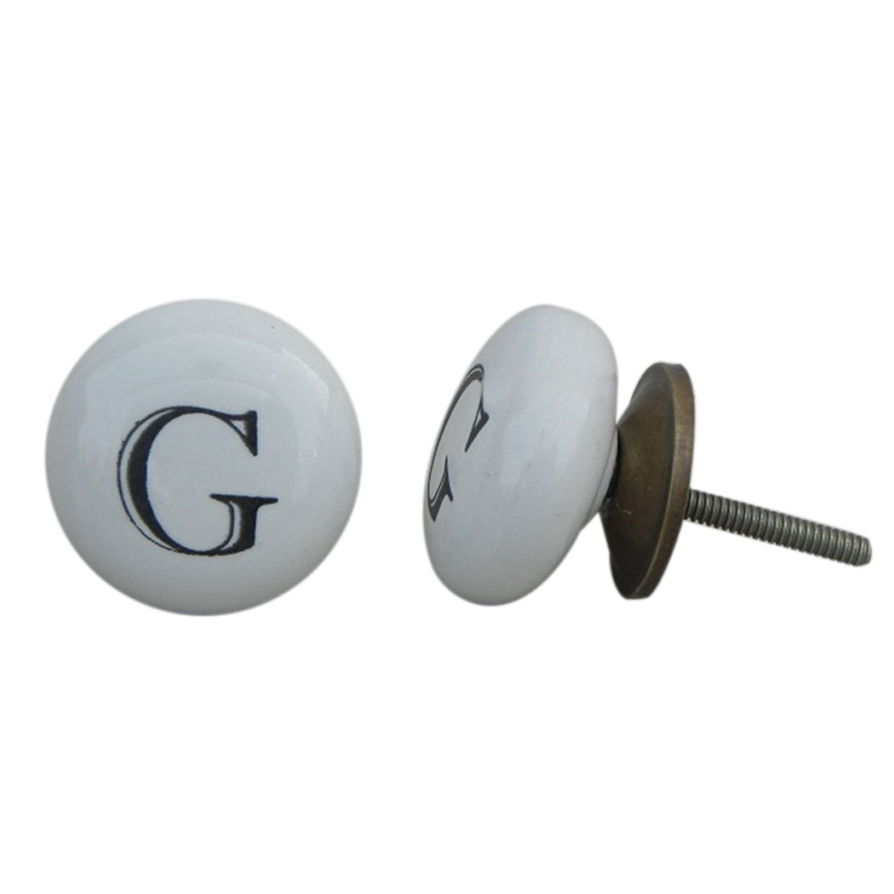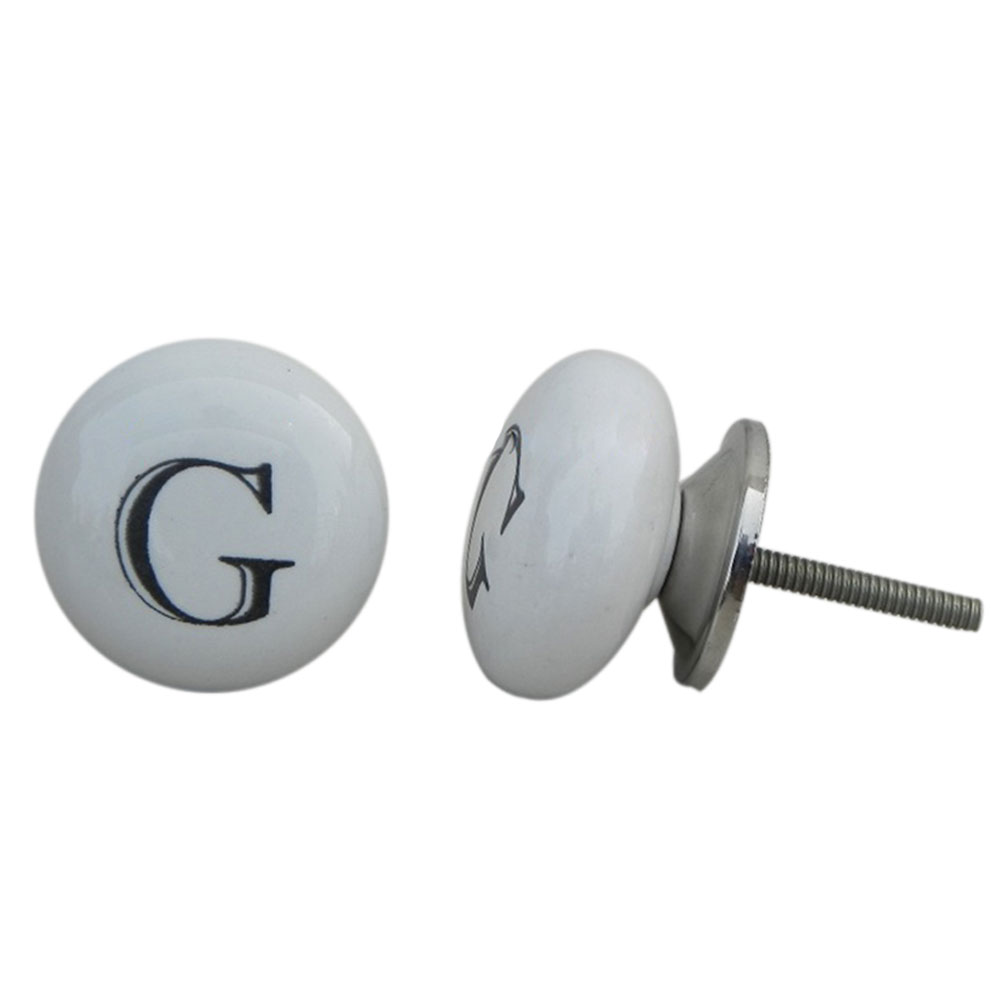 G alphabet ceramic dresser knob gives a glamorous, aesthetic and a personalized feel to your home décor. Each furniture knobs comes wit nut and washer to close the other end of the screw.