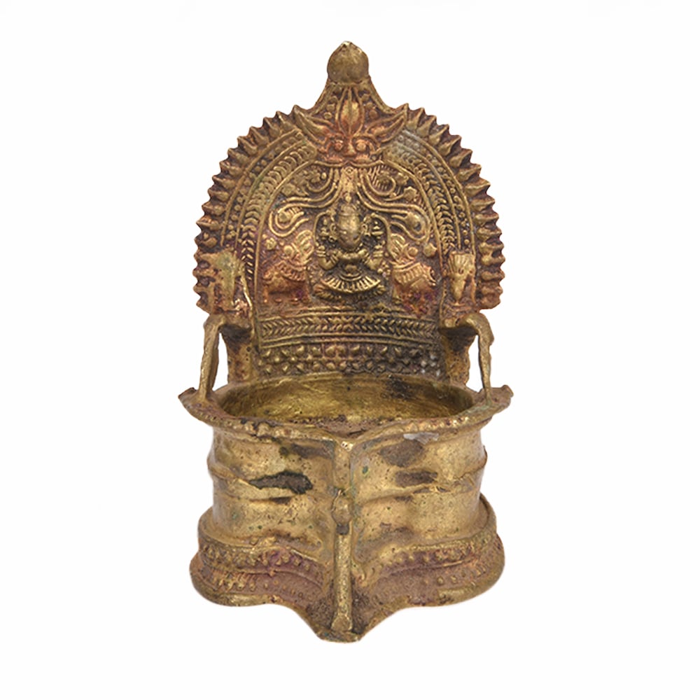 Gaja Lakshmi Bronze Oil Lamp with a Single Wick Used in Traditional Functions. It is Made by Lost Wax Process. Adds Spiritual Flavor to Your Decor. Vegetable Oil, Mustard Oil or Desi Ghee can be Use to Light the Lamp with Cotton Wicks.