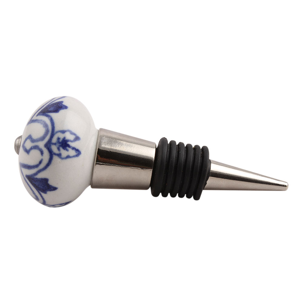 Geoffrey Blue Ceramic Wine Stopper.zinc alloy wine bottle stopper with attractive Jute Bag Packaging.