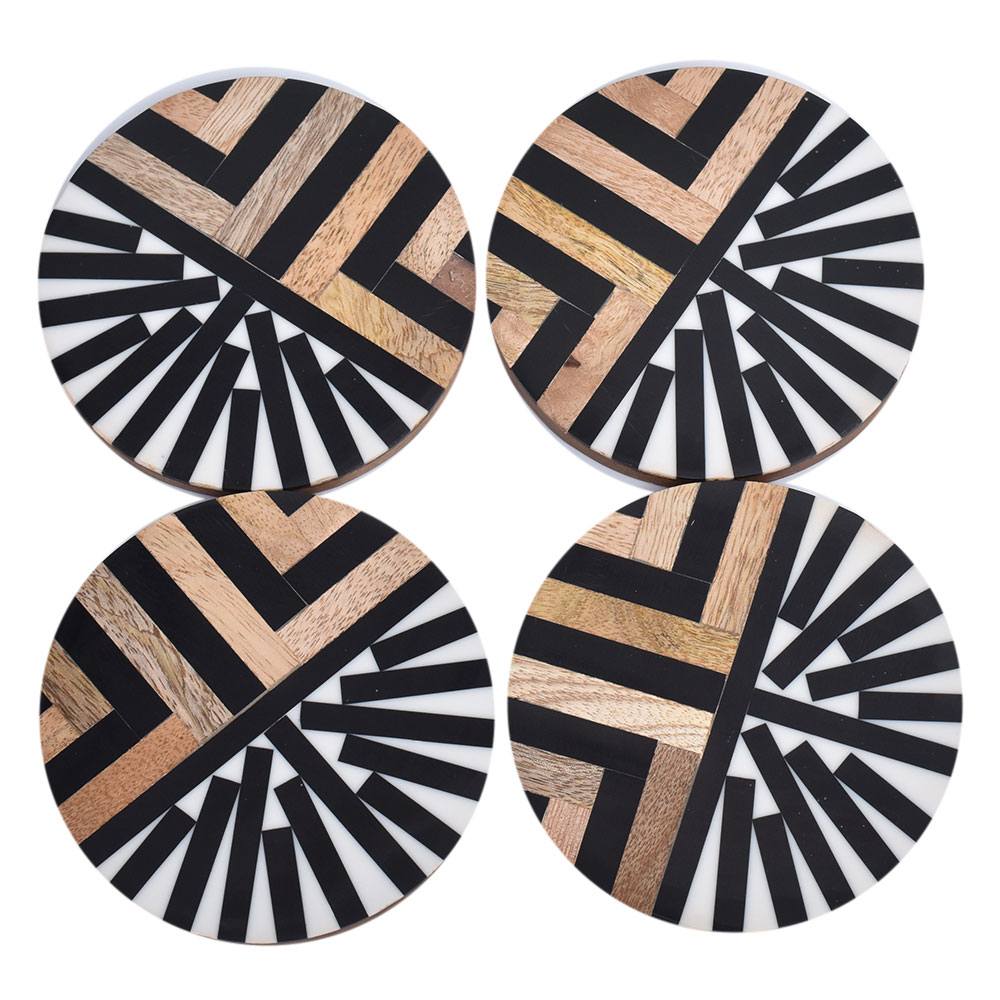 Geometric Wood And Resin Coasters Cup Holder In Set Of 4
