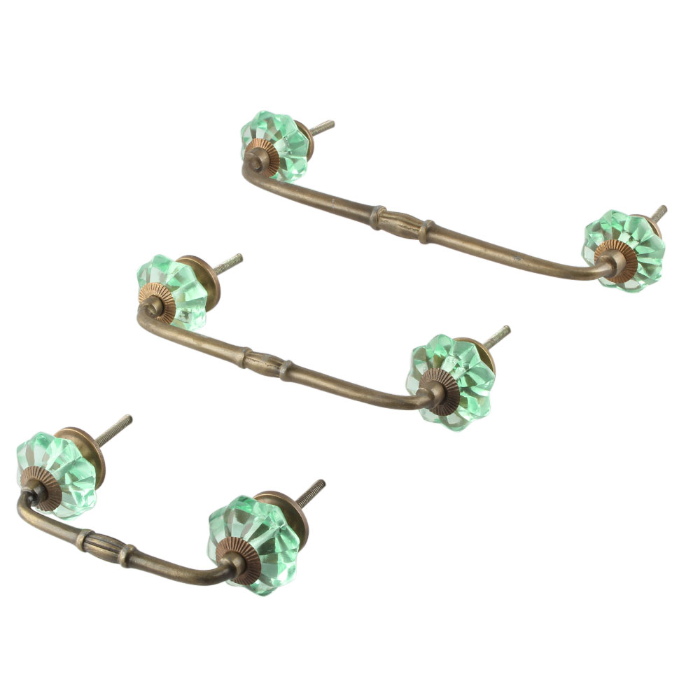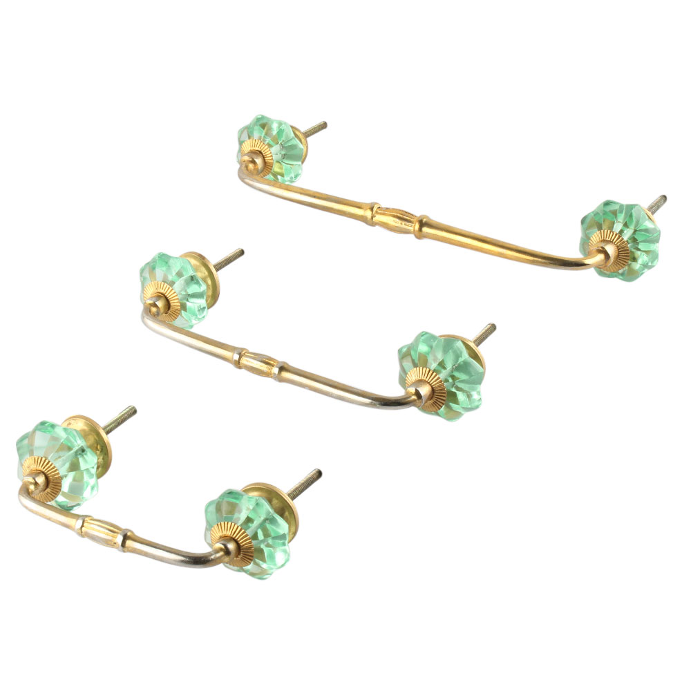 Mint Green Glass Bridge Handle. Ideal for Drawer, Dresser, Cabinet, Wardrobe, Cupboard and Almirah.