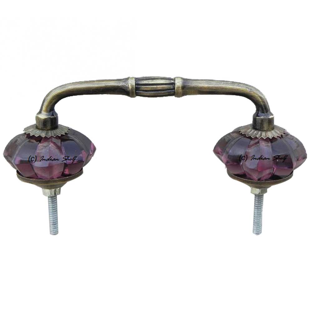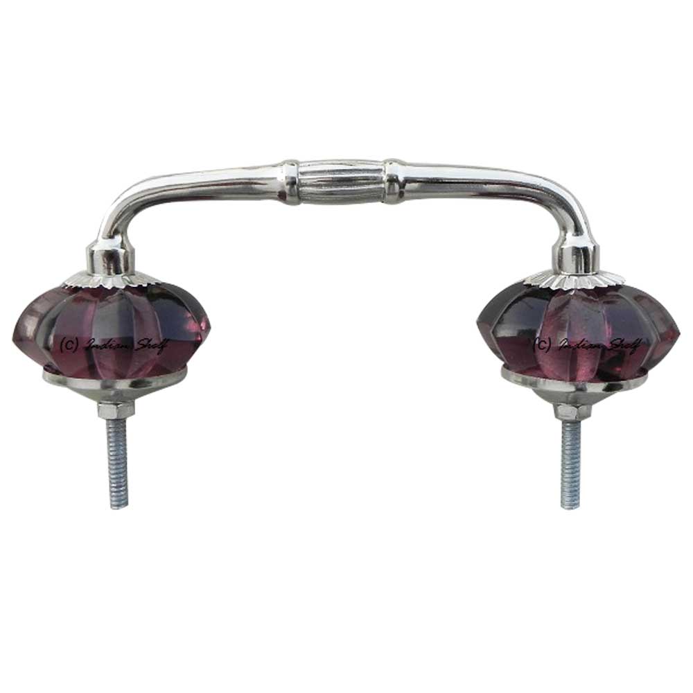 Purple Glass Bridge Handle. Ideal for Drawer, Dresser, Cabinet, Wardrobe, Cupboard and Almirah.