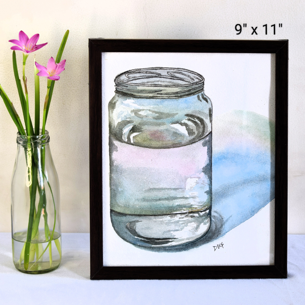 Glass Jar with Water Watercolor Painting on Paper by Artist Dimpana | 9 x 11 Inches