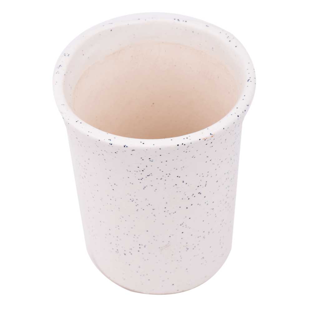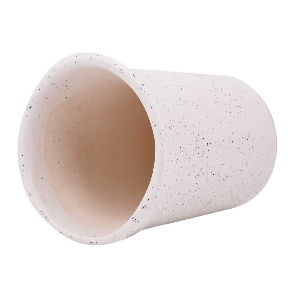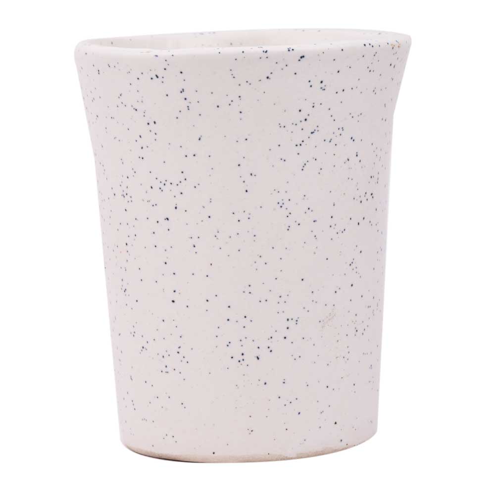 • Glass Shape White Ceramic Pot With Tiny Black Dot