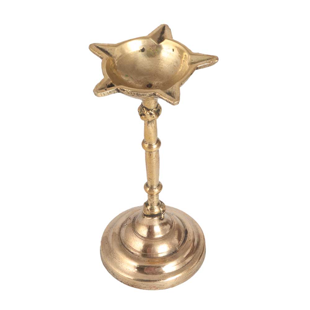 Buy a handmade oil lamp online that is made of high quality brass, making it stand out from other oil lamps. It has a shiny look with an incredible design that will match your interior decor. This oil lamp is handmade by professional artisans from India using traditional methods. Place this oil lamp in your restaurant, hotel, cafe or spa and it will be a focal point of attraction for your guests and visitors. An oil lamp with 5 jyots that can be lit with mustard oil or ghee and cotton wicks to produce light and spread positive vibes in the surrounding. A perfect gift for housewarmings, anniversaries, birthdays, thanksgiving, weddings, festivals or auspicious events for your loved ones.