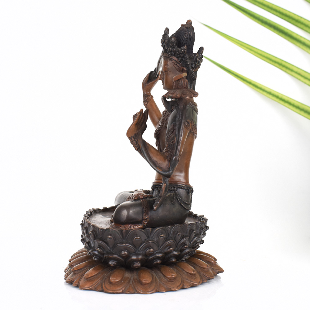 - Sits in a serene meditation pose, inviting focused contemplation