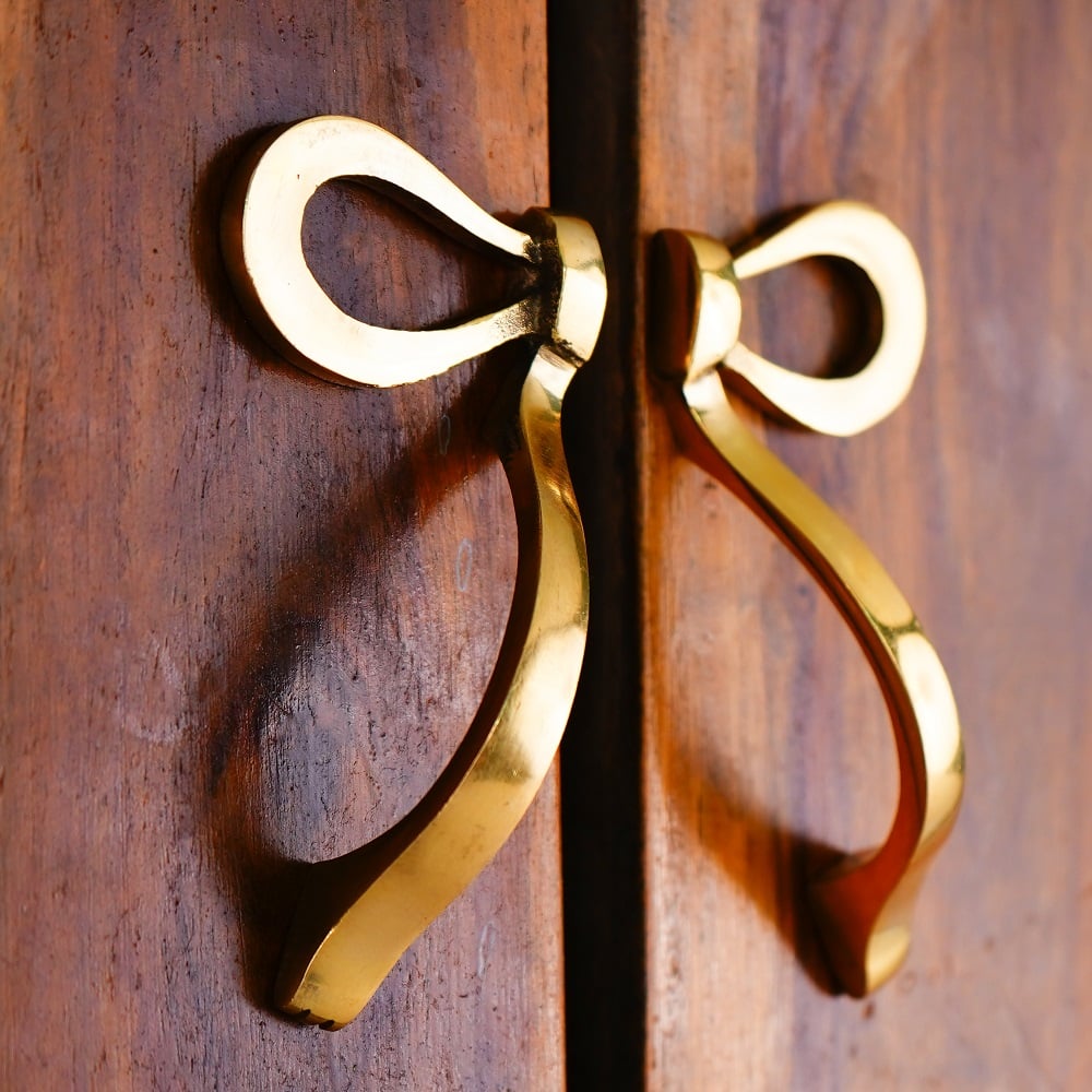Elevate the look of your cabinets with the stunning Golden Brass Bow Cabinet Door Handle. This Small, statement-making piece adds a touch of timeless elegance to any kitchen or bathroom. The Golden Brass Bow Cabinet Door Handle is the perfect blend of form and function. Its captivating design instantly upgrades the aesthetic of your cabinetry, while the sturdy brass construction ensures reliable, long-lasting performance. This handle is ideal for homeowners and design lovers who want to elevate the look of their kitchen, bathroom, or any other room with a touch of refined elegance. Its classic yet eye-catching style complements a wide range of decor styles, from traditional to modern farmhouse. Install it on your cabinet doors, drawers, or even on furniture for a cohesive, high-end look throughout your home.