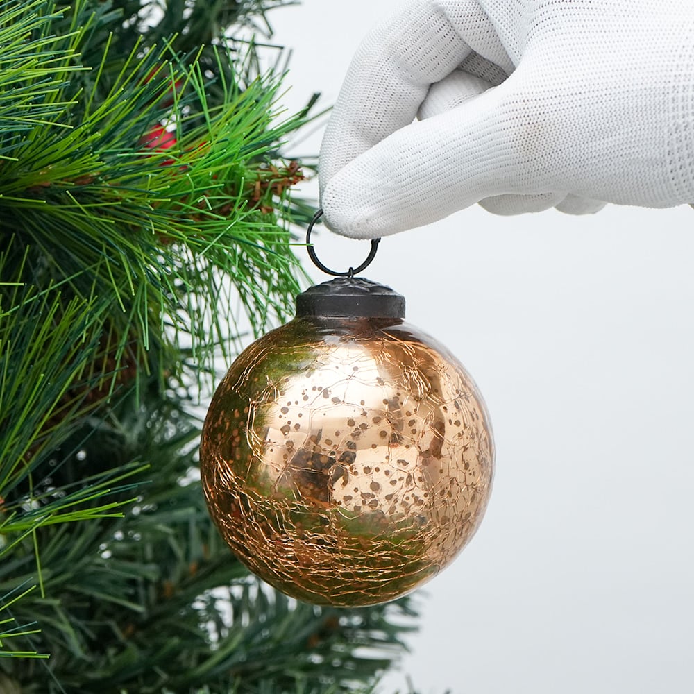 • Gold Crackle Vintage Style Mercury Glass Hanging Ornament