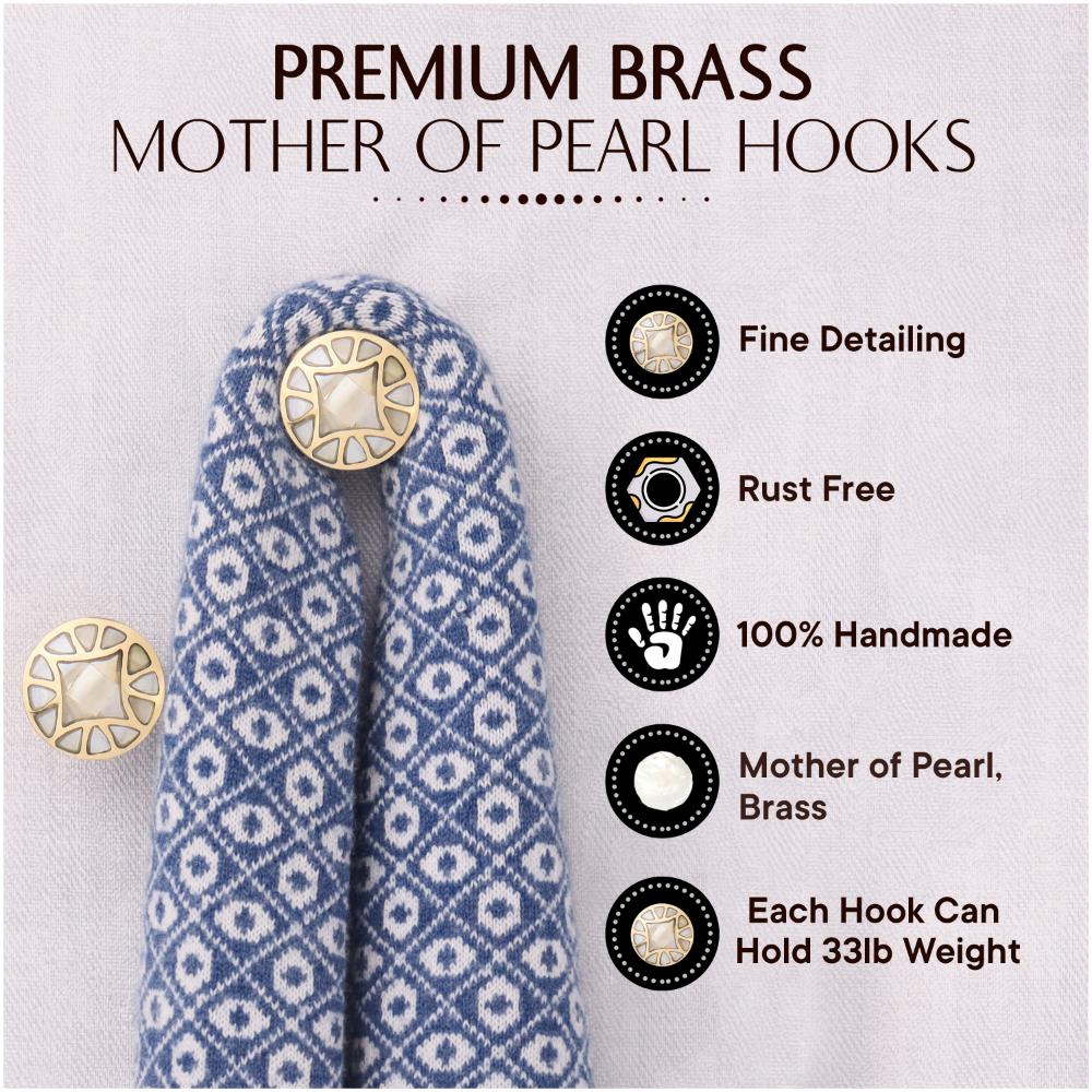 • Gold Embroidered Metal Wall Hooks-3 Pieces