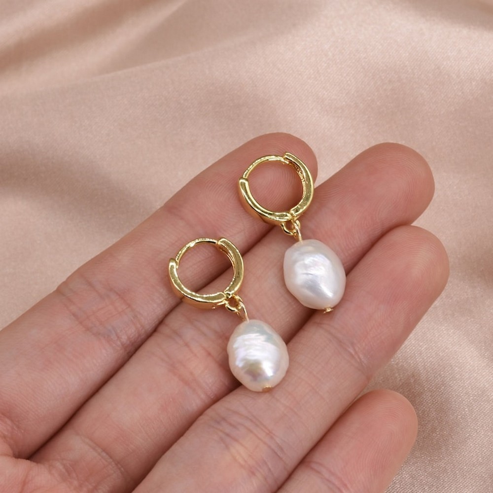 Timeless, elegant, and effortlessly chicour gold huggie hoops with baroque pearl drops bring a touch of refined luxury to any look. Each hoop features a high-shine gold finish paired with a naturally shaped baroque pearl, creating a classic yet modern silhouette that transitions beautifully from day to evening.