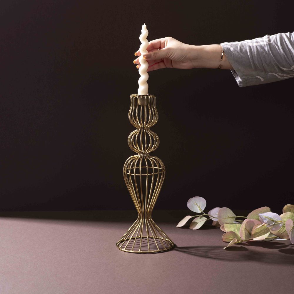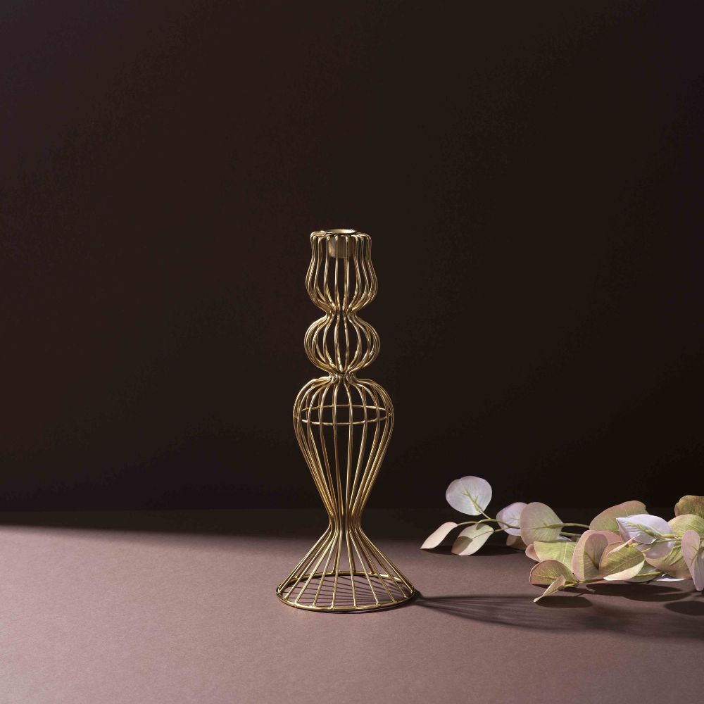 • Gold Iron Wire Candle Holder