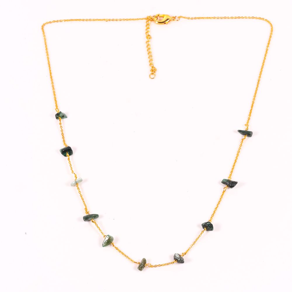 Elevate your style with this Emerald nugget choker necklace, handcrafted from brass with gold plating. Featuring natural Emerald gemstones, each nugget adds vibrant color and elegance, making this choker a unique and eye-catching accessory. With an 18-inch chain, it sits perfectly around the neckline, ideal for women who love handmade, sophisticated jewelry.