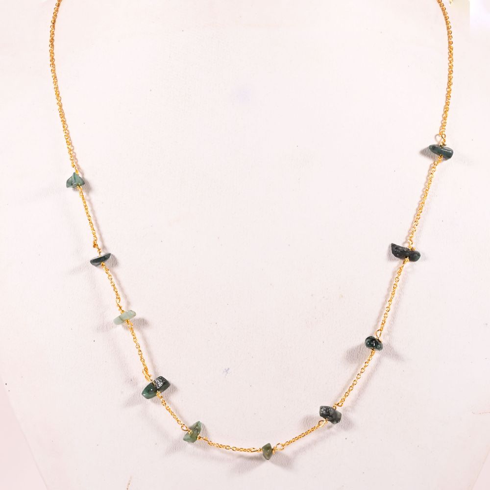 The Gold Plated Brass Choker Necklace with Emerald Nugget Stones for Women celebrates natural texture and refined craftsmanship. Crafted in brass and finished with a warm gold plating, this choker features organically shaped emerald nugget stones that bring earthy richness and subtle movement. Designed to sit gracefully at the neckline, it balances bold colour with a clean, contemporary profile. Ideal for women who appreciate statement jewellery rooted in natural beauty.