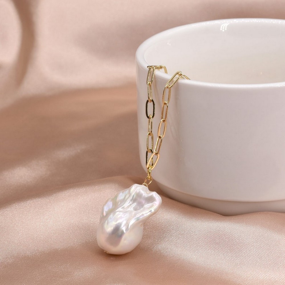 Wear this baroque pearl necklace with deep necklines or satin fabrics to highlight its organic shape, and store it in a soft-lined box to protect the pearl’s surface.