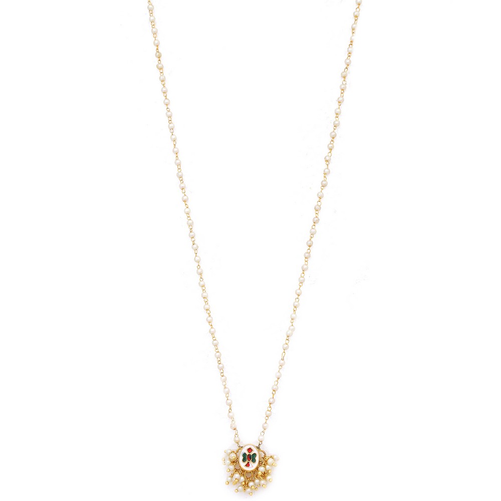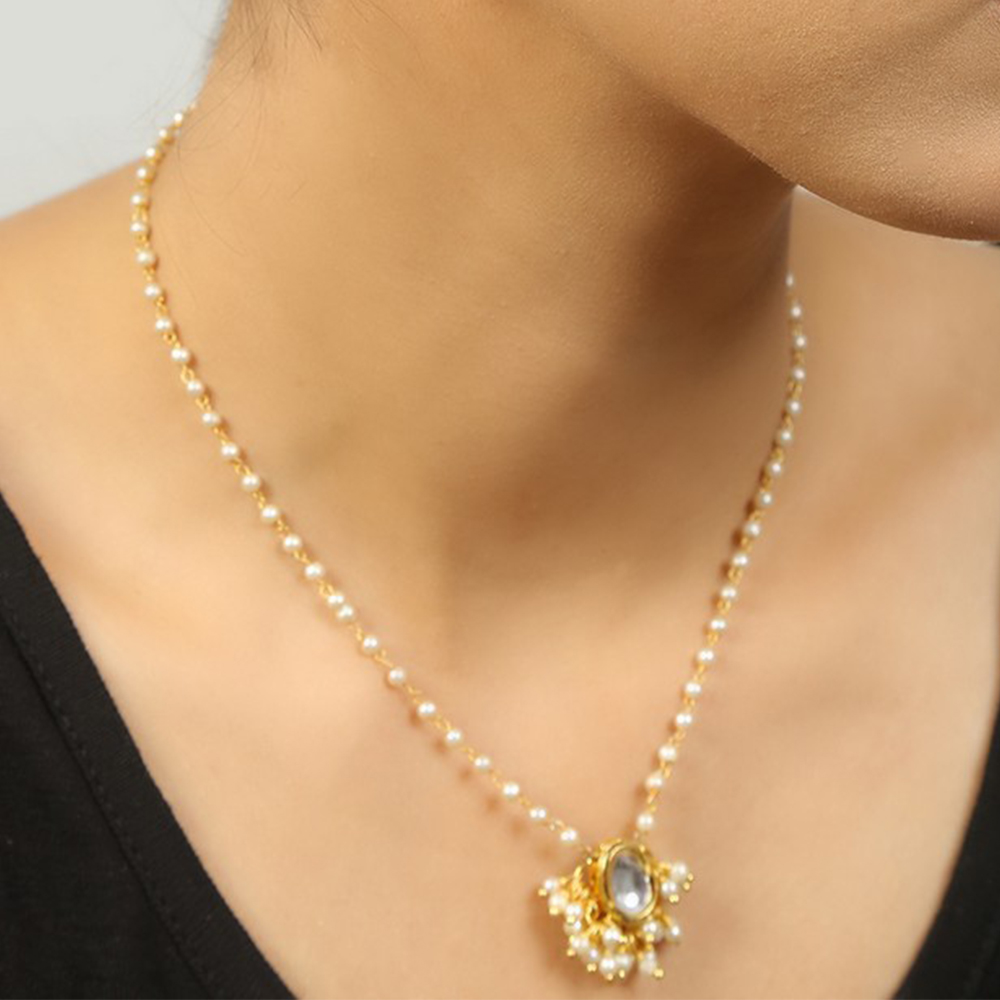 Celebrate individuality with this Gold Tone Kundan Double Oval Pendant Necklace & Earring Set with Pearl Tassels. Featuring a double oval kundan stone pendant surrounded by delicate pearl tassels and matched with earrings of a similar design, this elegant set is perfect for bridal ensembles, festive occasions, and meaningful gifting. Packed & quality-checked by Indianshelf.