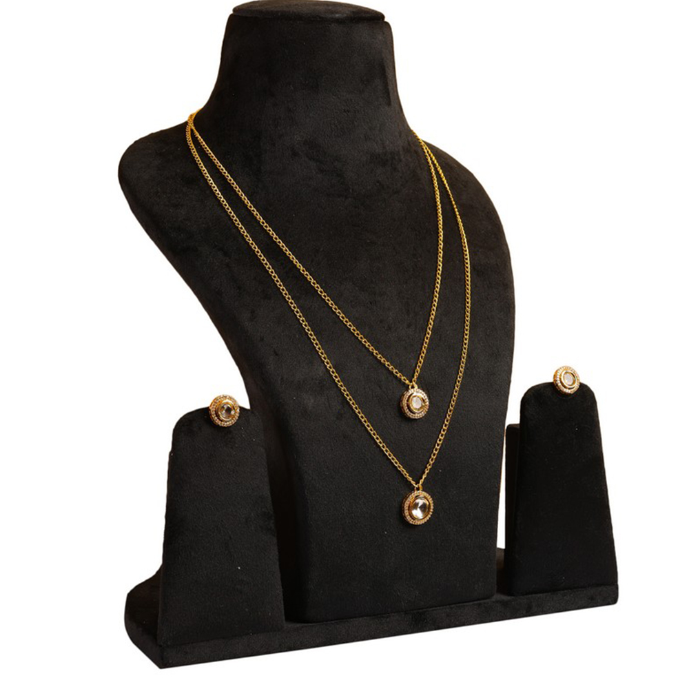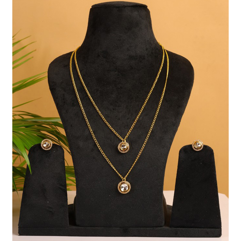 Celebrate individuality with this Gold Tone Layered Necklace & Stud Earring Set with Halo Pendants. Featuring two delicate gold-tone chains of varying lengths, each adorned with a circular halo pendant and complemented by matching halo stud earrings, this elegant set is perfect for weddings, parties, everyday outfits, and meaningful gifting. Packed & quality-checked by Indianshelf.