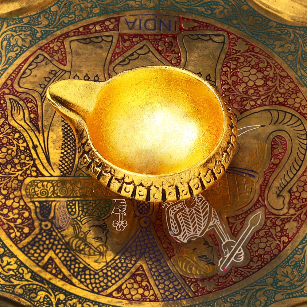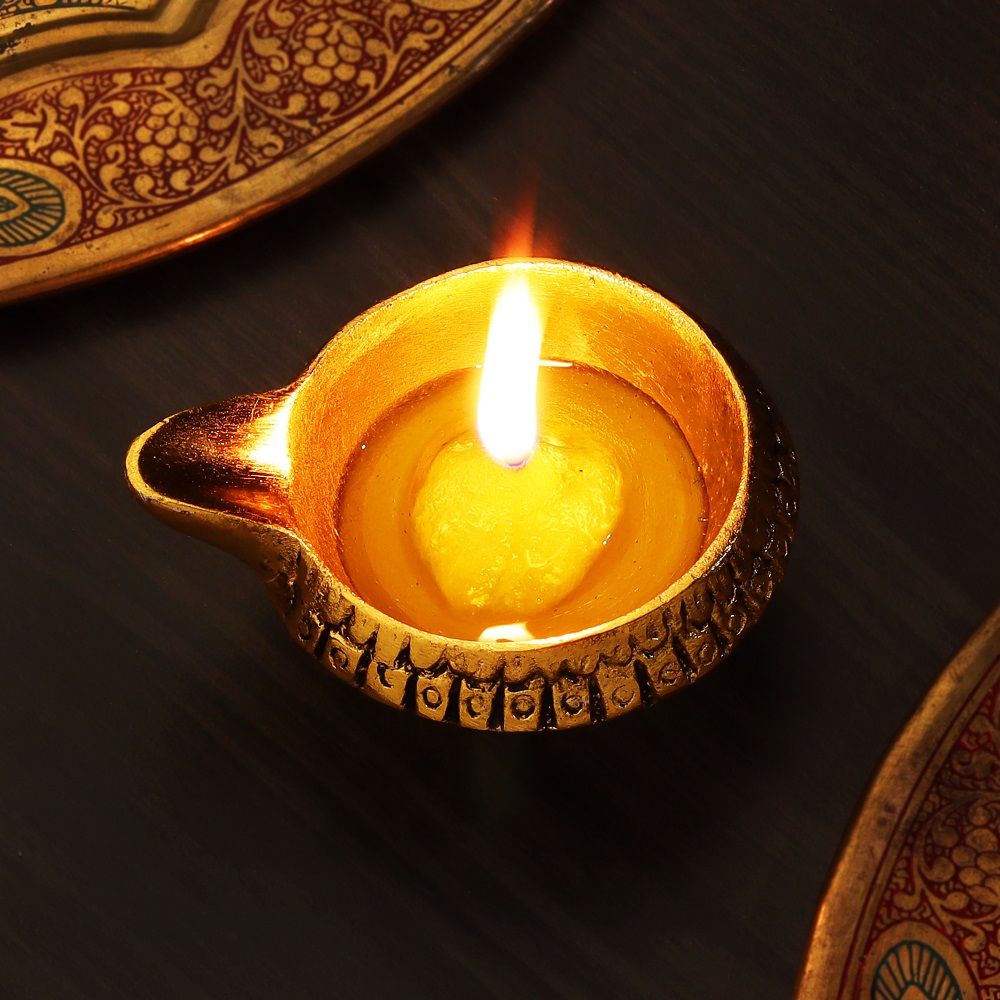 Honor tradition with this golden aluminium oil lamp diya, crafted to bring light, prosperity, and positivity into your home. With its polished golden finish and sturdy aluminium body, this diya reflects a warm glow, making it ideal for Diwali celebrations, daily puja, or decorative displays. Compact and elegant, it fits beautifully in mandirs, entryways, or festive décor arrangements.