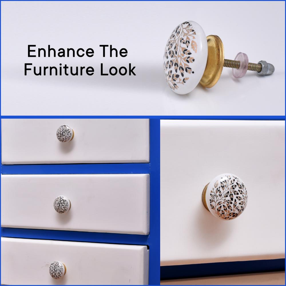 The Golden and Black Leaf Flat Ceramic Cabinet Knobs are designed to bring elegance, functionality, and timeless beauty to your home. Whether for new furniture or a home renovation project, these knobs are sure to elevate the look of your cabinets, drawers, and wardrobes. Add a touch of nature-inspired luxury with these beautifully crafted knobs, and transform your home with ease.