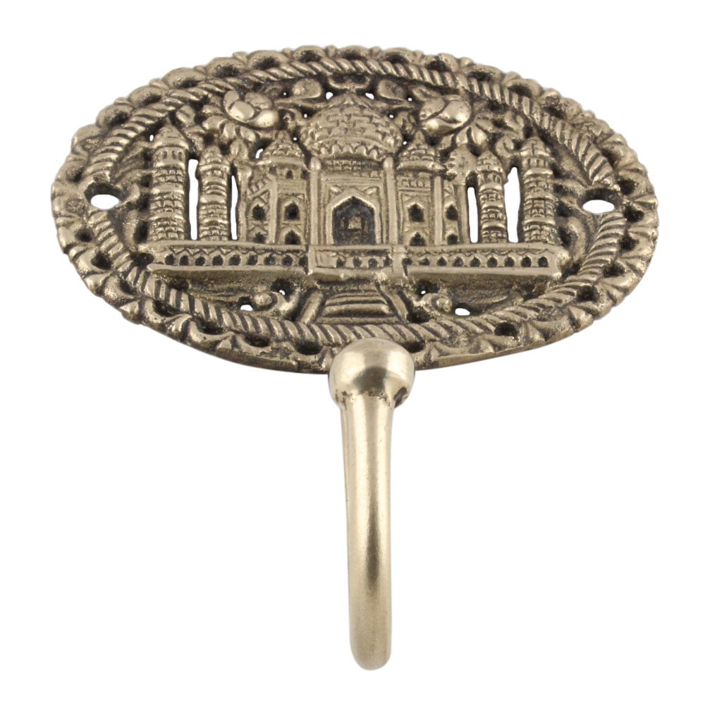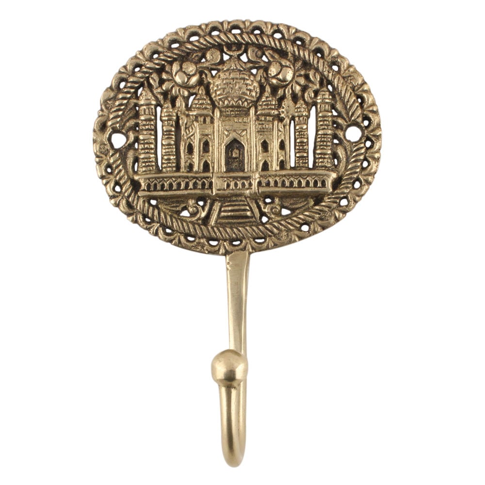 Celebrate India's architectural brilliance with the Golden Beautiful The Taj Mahal Wall Brass Decorative Hook. Handcrafted from solid brass and finished in radiant gold, this exquisite wall hook showcases an intricate relief of the legendary Taj Mahal—symbolizing eternal beauty and refined craftsmanship. Designed to honor cultural heritage while offering practical use, this brass hook transforms a simple storage need into an artful expression of history and design.