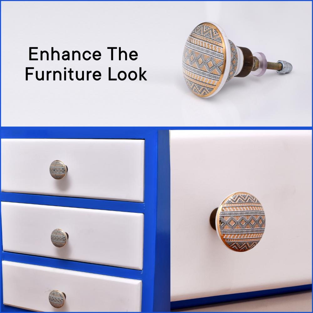 Made from durable ceramic, these knobs are designed to last. The high-quality material ensures that the golden border pattern will remain intact and vibrant even with regular use. Ceramic is known for its longevity and resistance to wear and tear, ensuring that these knobs will continue to look pristine over time. Whether they’re on high-use kitchen cabinets or bedroom furniture, these knobs will maintain their elegance and functionality.