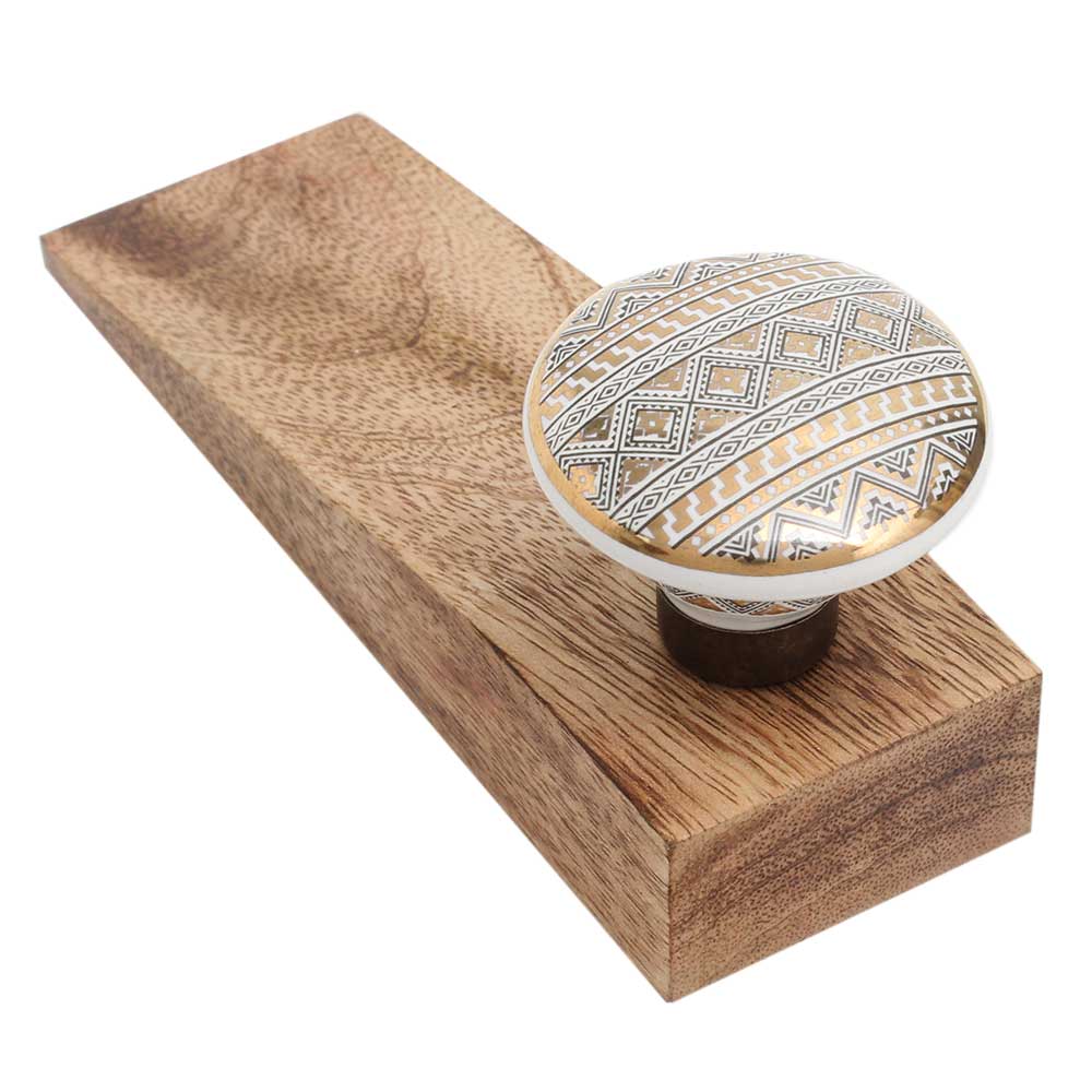 About the Product Handmade Ceramic Wooden Door Stopper.Wooden Door Stopper with a Ceramic Knob to Carry it Easily. This Wooden Door Stopper has Glue Dots under it to Ensure that it does not Slip. It is Handmade by the Craftsmen of India and this Innovative Door Stopper won't Disappoint You. Why Choose Our Product? 100% Handmade in India Premium Quality Hardware, Rust Free and Long Lasting Kids Friendly, No Sharp Edges on Corners All Hardware is Included, No Additional Hardware is Required Product Specification Pack of 1 Piece As it Appears