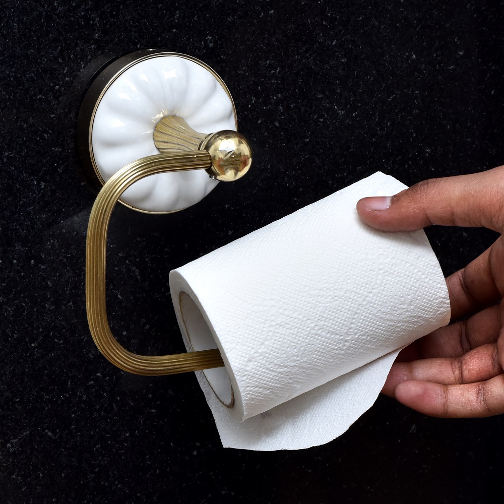 With its blend of classic golden brass and intricate ceramic details, this toilet paper holder brings a sense of timeless luxury to your bathroom. Whether in a guest bathroom or your personal space, it adds a refined touch that elevates the overall ambiance.