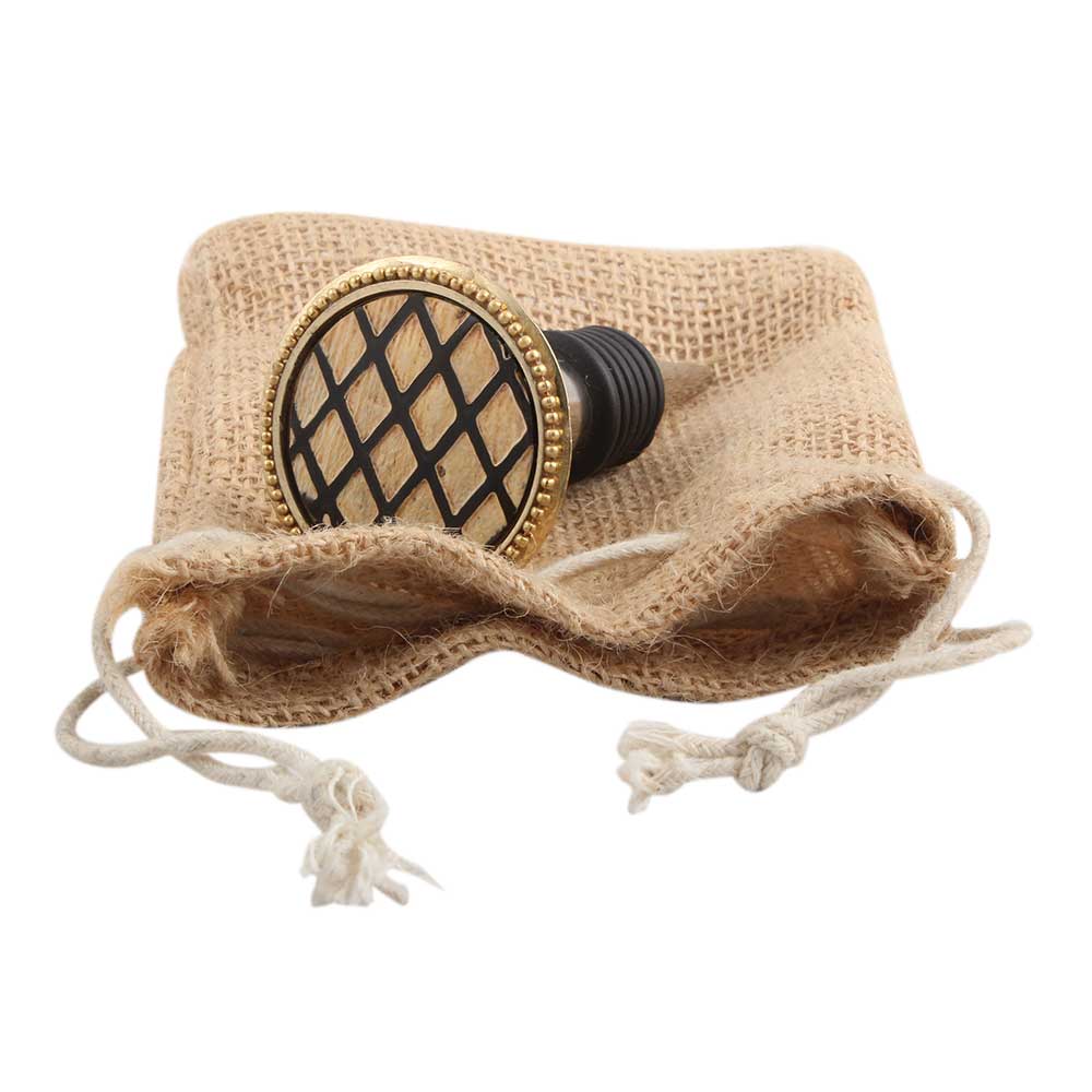 Golden Brass Cut Wine Stopper.zinc alloy wine bottle stopper with attractive Jute Bag Packaging.
