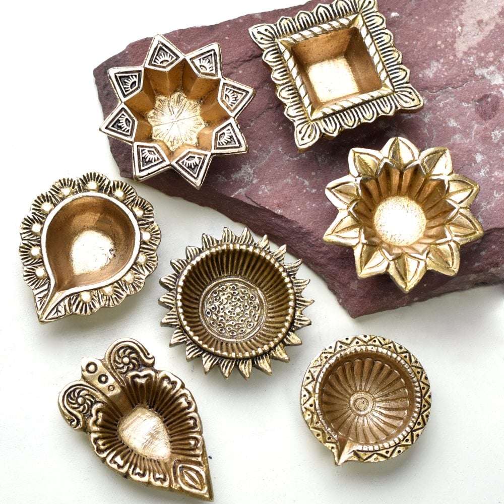 Enhance your sacred rituals with the Golden Brass Decorative Diwali Diya, a beautifully crafted deepak designed to bring light, purity, and prosperity into your home. Its elegant golden polish and compact design make it perfect for mandir décor, Diwali celebrations, and auspicious gifting. Handcrafted in brass, this diya combines timeless tradition with artisan craftsmanship.