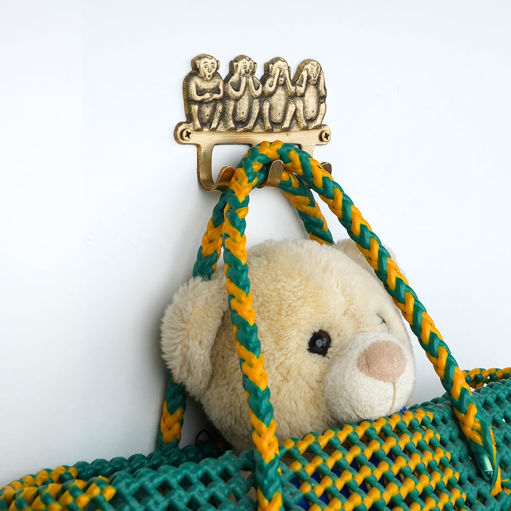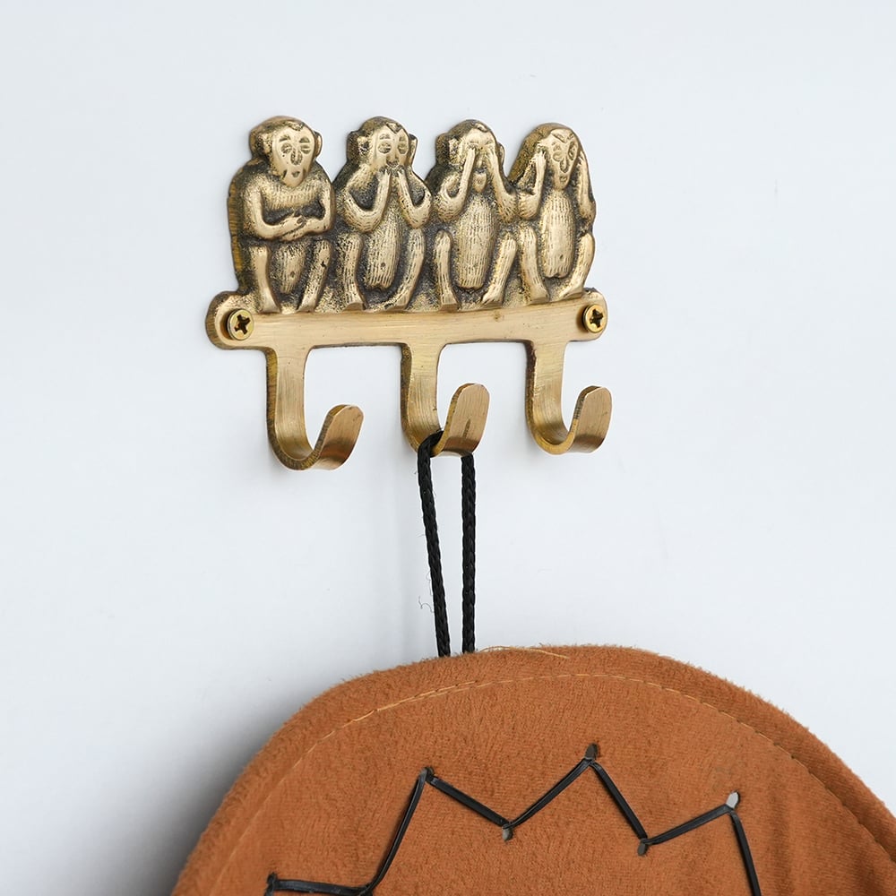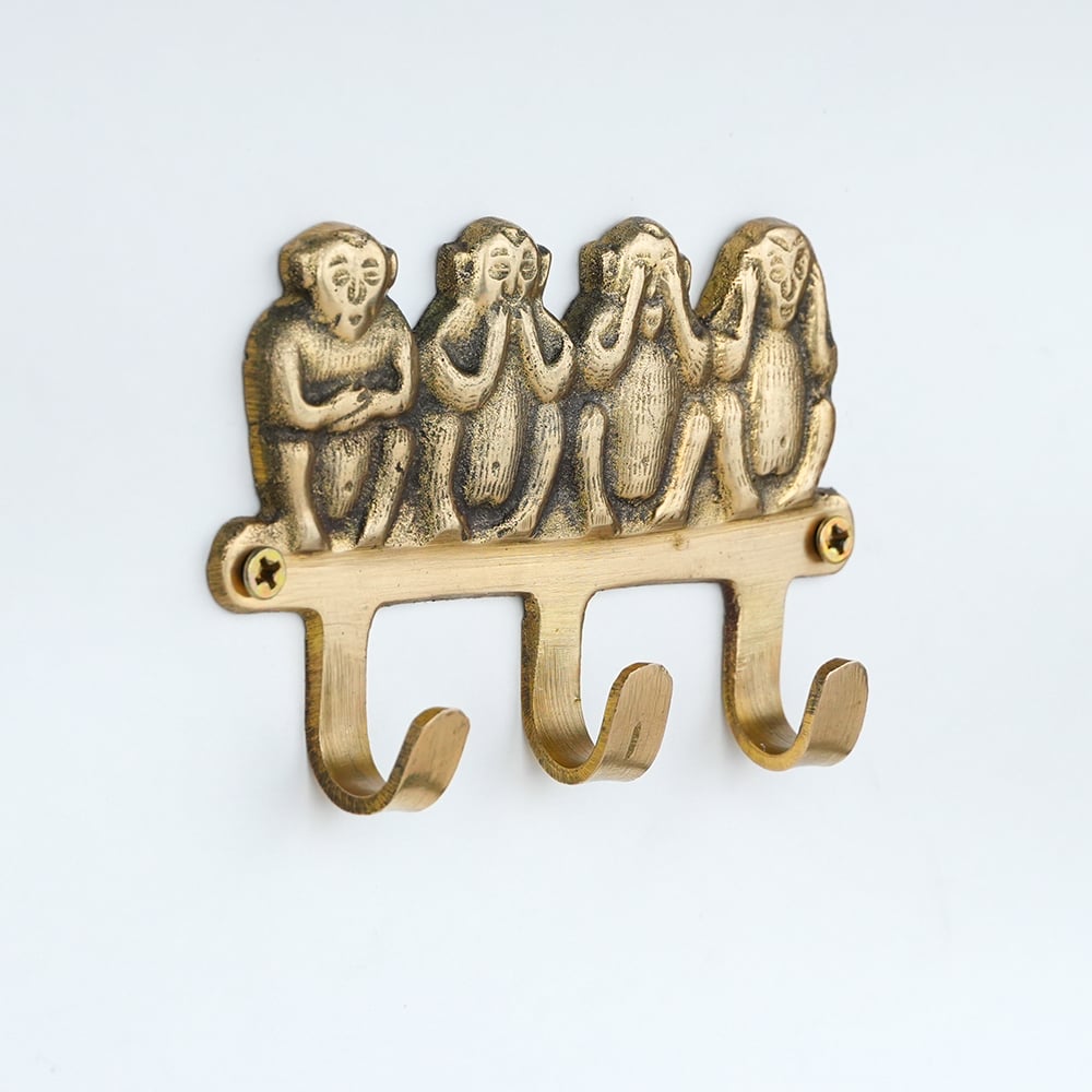 Handmade Golden Brass Four Elephant Wall Hooks. This Hook is Strong Enough to Hold Your Cloths, Keys, Tea Cups, Coffee Mugs, Hand Towels Etc.