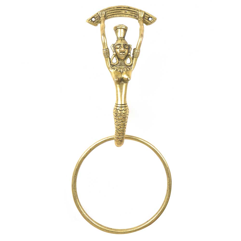 Golden Brass Lady Door Knocker With Ring
