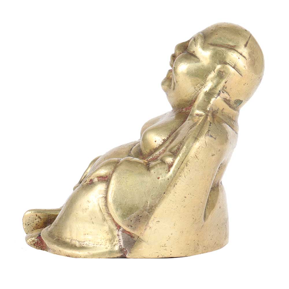 Brass laughing Buddha is a wonderful elevating statue to have in your home since it is said to provide positive energy, money and abundance, general good luck, spiritual insight and understanding, and a long and happy life.