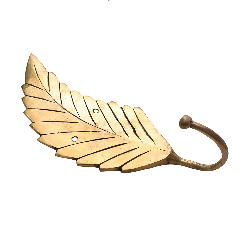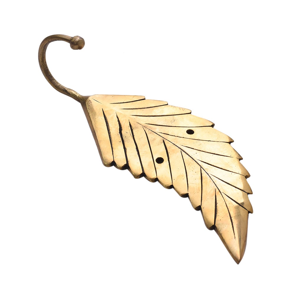 The artistic leaf shape and golden hue turn a simple wall hook into a décor piece that enhances any corner.
