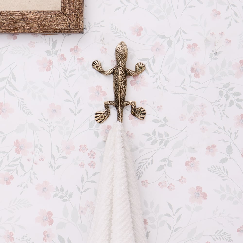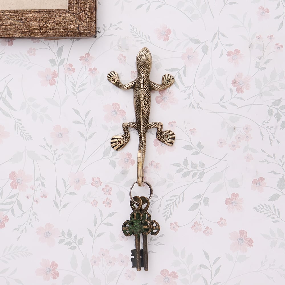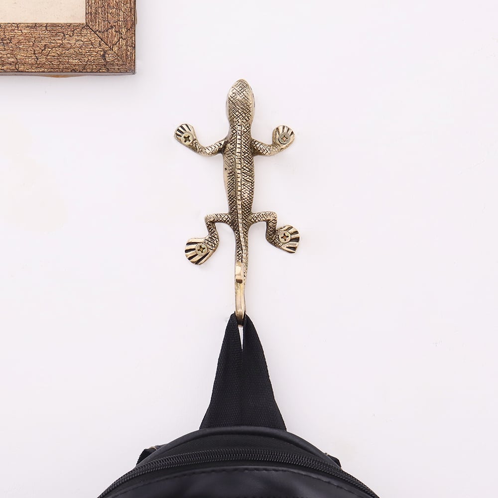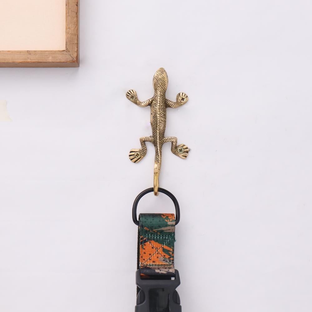 Made from high-quality brass, this wall hook is both durable and stylish. The golden brass finish adds a touch of luxury while ensuring the hook remains resilient over time, combining strength with visual appeal. The fine detailing of the lizard design adds to the piece's overall interest.