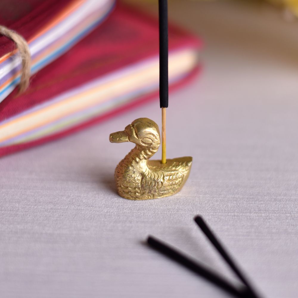 This lovely brass Duck shape  incense sticks holder have been employed in religious rituals, as they are thought to have magical properties that can either attract or repel particular energies or spirits. In actuality, the motivations for each flavor are specifically in the effects that could arise from incense. Incense use among Indians also has a long history. Indian incense is thought to be much more than just a deodorising agent. In fact, incense is a necessary component of every religious ceremony in India. Its traditional and natural appearance is attributed to the brass feel, which will undoubtedly improve the atmosphere in your home.