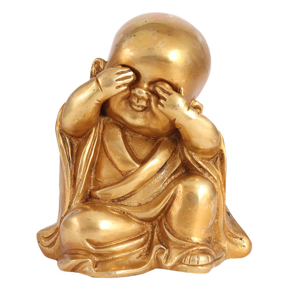 Idols are believed to bring success and prosperity at home. This beautiful monk sees no evil statue is a wonderful gifting option for your best friend on her housewarming party. Ideal to keep in your living room in a showcase, this showpiece in a meditating posture is made from pure brass.