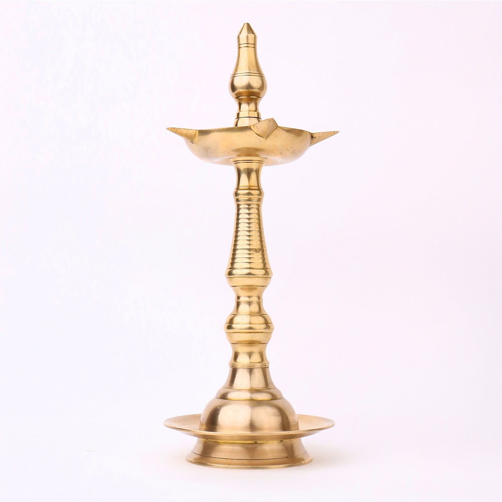 Embrace the splendour of this Brass Oil Lamp with 5 Jyots, a true embodiment of craftsmanship, spirituality, and timeless beauty. A timeless piece that embodies the rich cultural heritage of India. Crafted with utmost precision by professional Indian artisans, this lamp is a testament to their mastery and devotion. Its gleaming golden finish, made possible by the use of high-quality brass, immediately captivates the beholder, making it an enchanting addition to any space. Designed for both functional and decorative purposes, this lamp can accommodate five cotton wicks soaked in either fragrant mustard oil or traditional desi ghee. When lit, the warm glow emitted by the flames illuminates the surroundings, creating a serene and sacred ambiance. The lamp also features a majestic lingam on the top, symbolizing divinity and spirituality. Versatile in its application, this lamp is commonly used during aarti ceremonies at temples and during Pooja rituals at homes and offices. Moreover, it serves as an incredible gift option for family, friends, or relatives, especially during special, festive, or auspicious occasions.