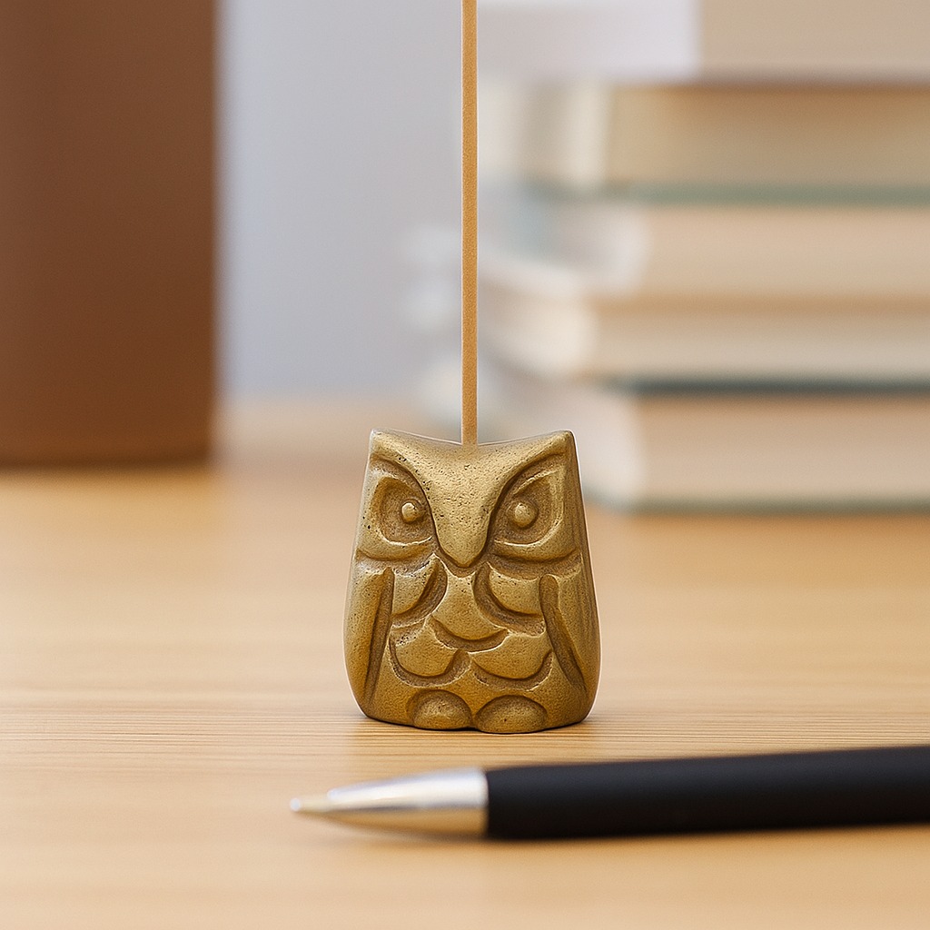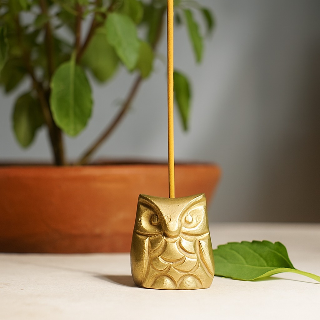 Golden Brass Owl Incense Stick Holder