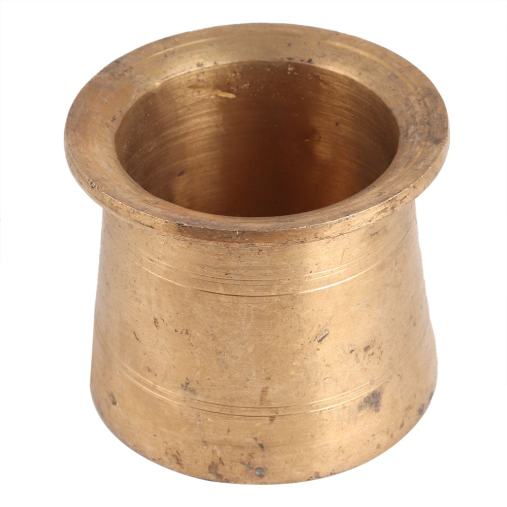 Antique elegantly designed brass panch patra cup adds to your home decoration or can be used for party or hotel adornment.  created by indian artisan using solid brass metal and simple design. This pure brass Panch Patra will add to the home décor value of your home temple or mandir. Brass metal enhances the beauty and vintage look of your home. These items can easily be transformed into a fantastic gift item for Diwali, Christmas, special occasion, and family events.