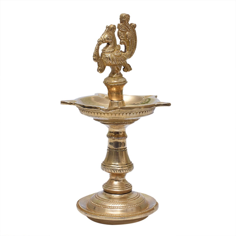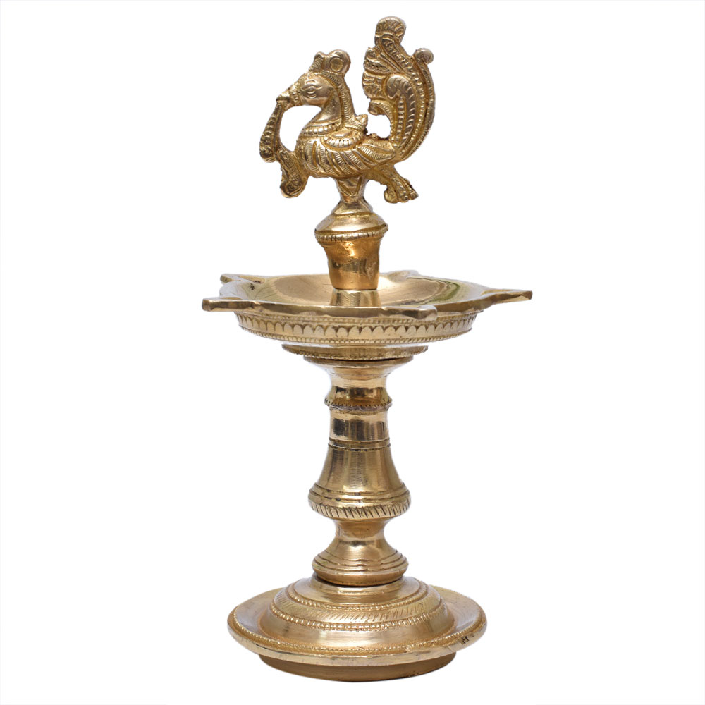 Golden Brass Peacock Design Oil Lamp Mayil Vilakku Diya