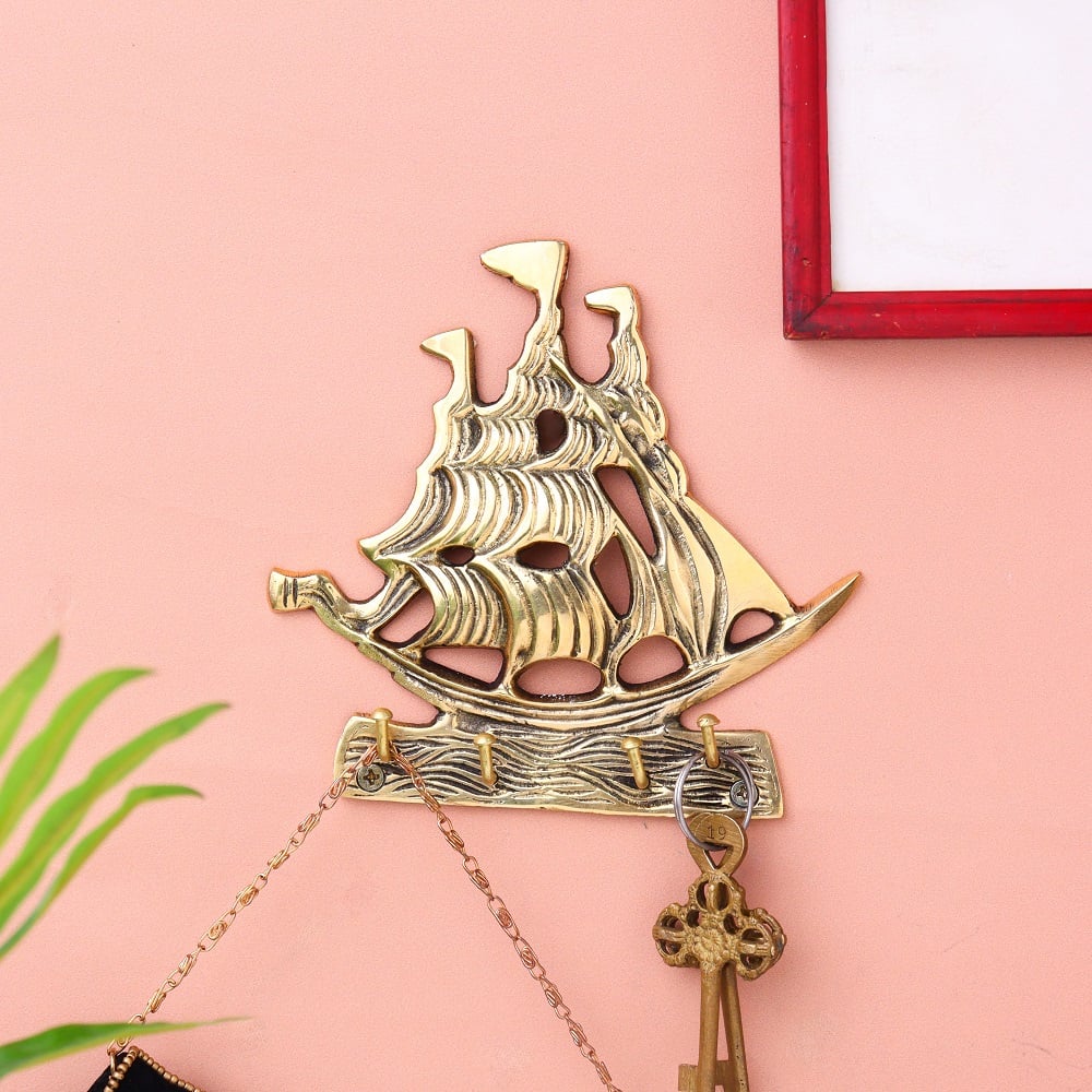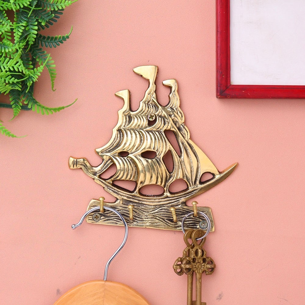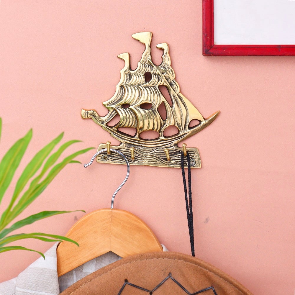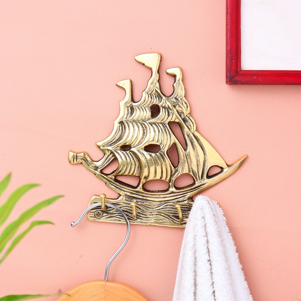 Material: Premium solid brass Finish: Polished golden tone with detailed ship engraving Installation: Wall-mounted with hidden screw fitting