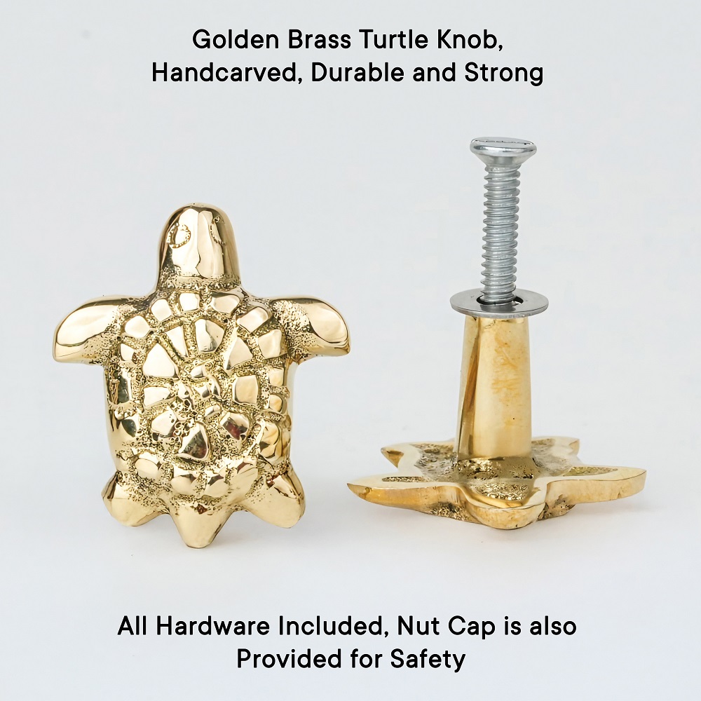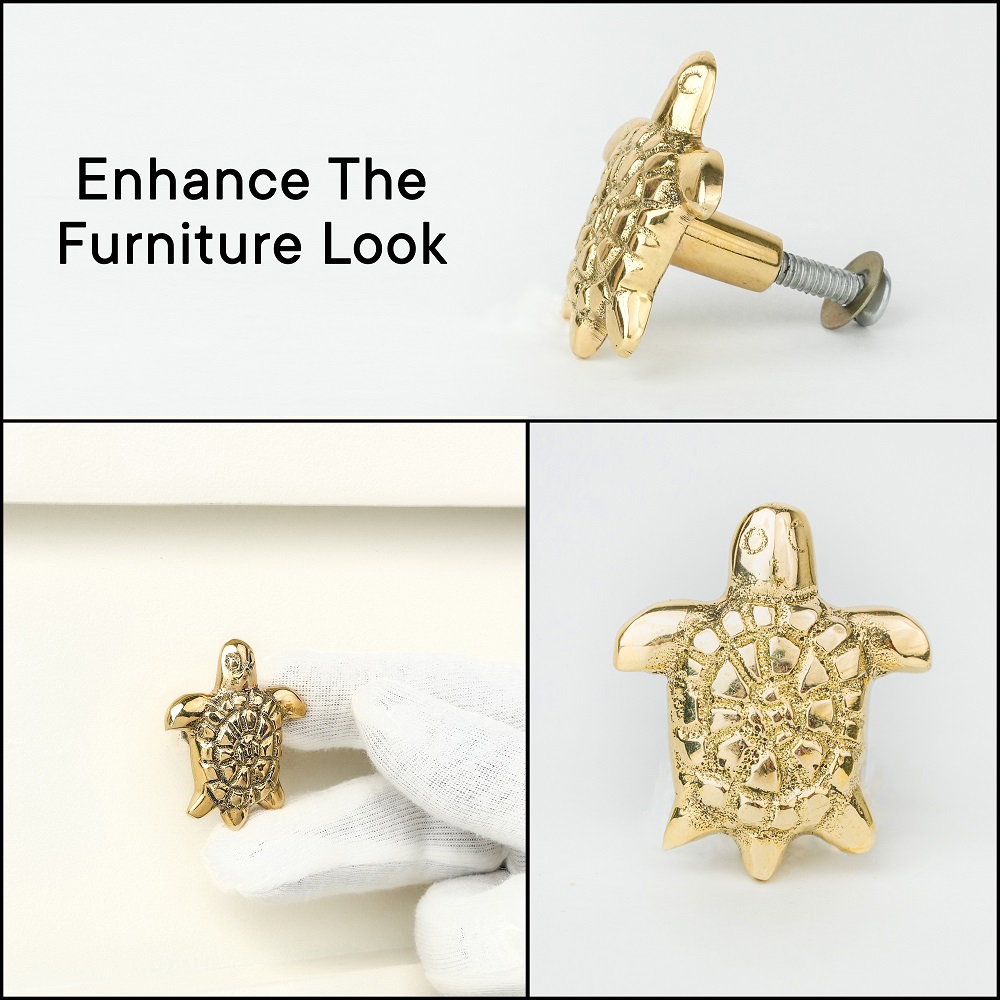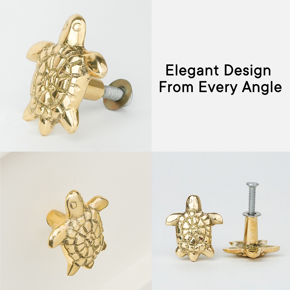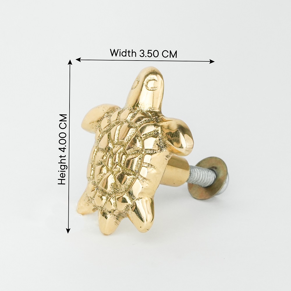 Bring a touch of luxury and symbolism to your interiors with this handcrafted golden brass turtle knob. Expertly cast from solid brass, this elegant knob showcases intricate detailing inspired by the turtle’s shell, symbolizing longevity, strength, and good fortune. Its polished golden finish adds a refined, timeless appeal to any cabinet, drawer, or furniture piece. Perfect for enhancing modern as well as traditional décor themes.