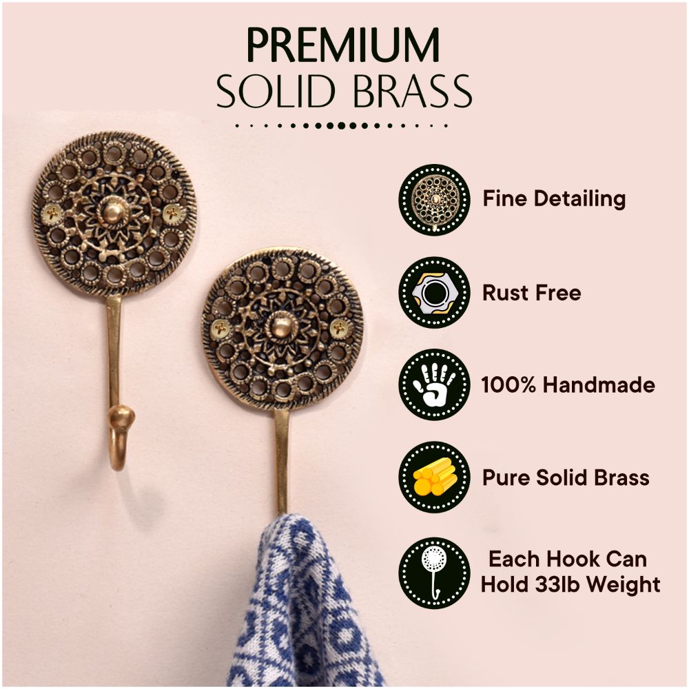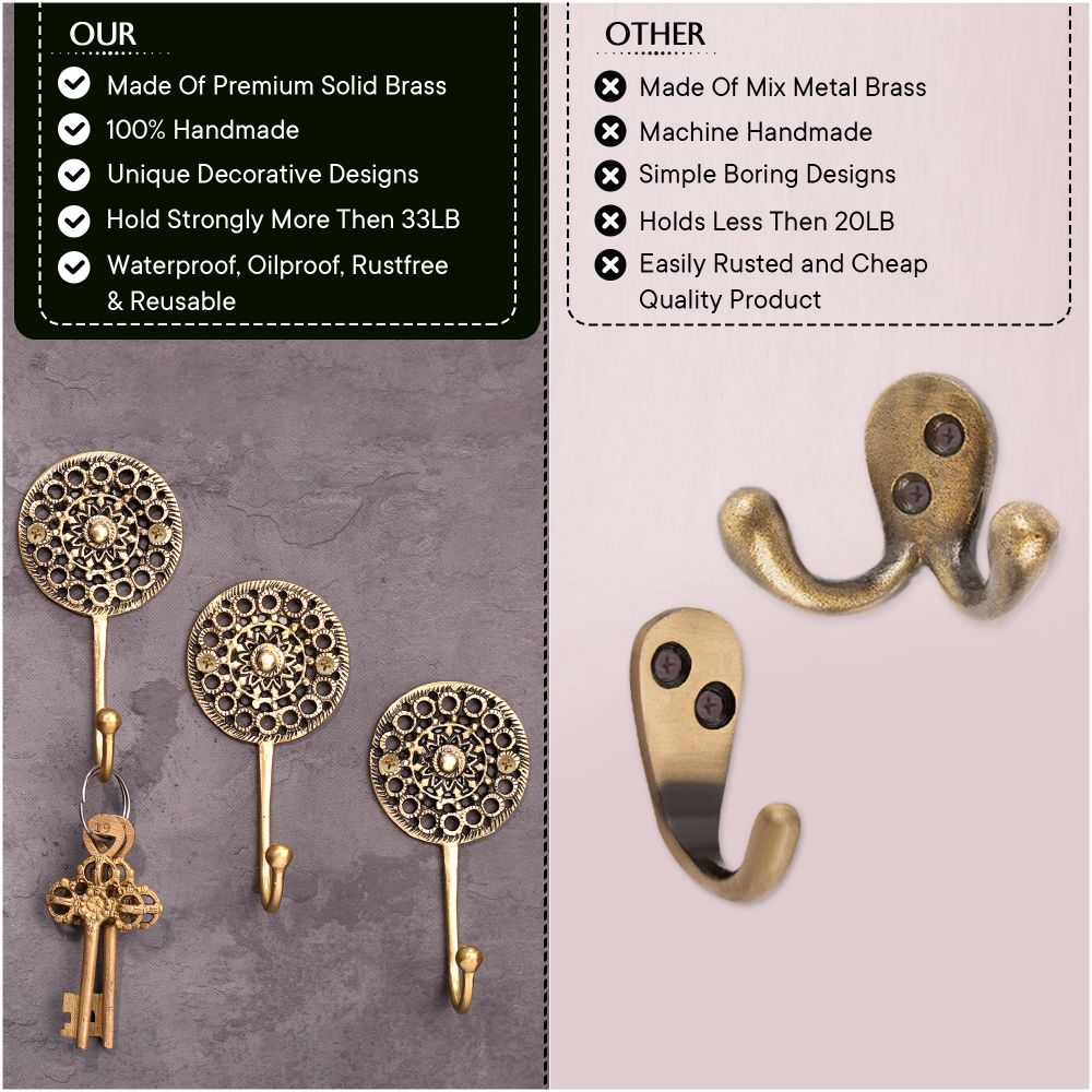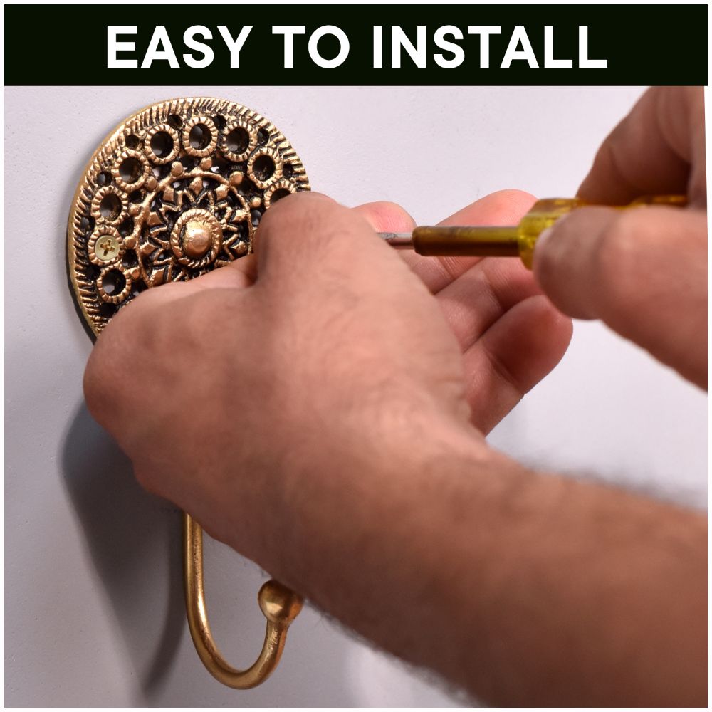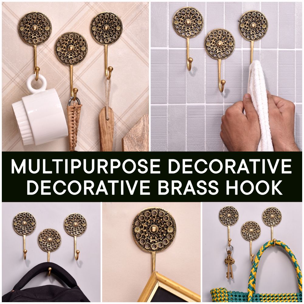 Constructed from premium-quality brass, this wall hook is built to hold a variety of items, from light accessories to heavier coats. Its robust design ensures durability, while the attractive floral engraving adds a decorative element that enhances the overall look of your space.