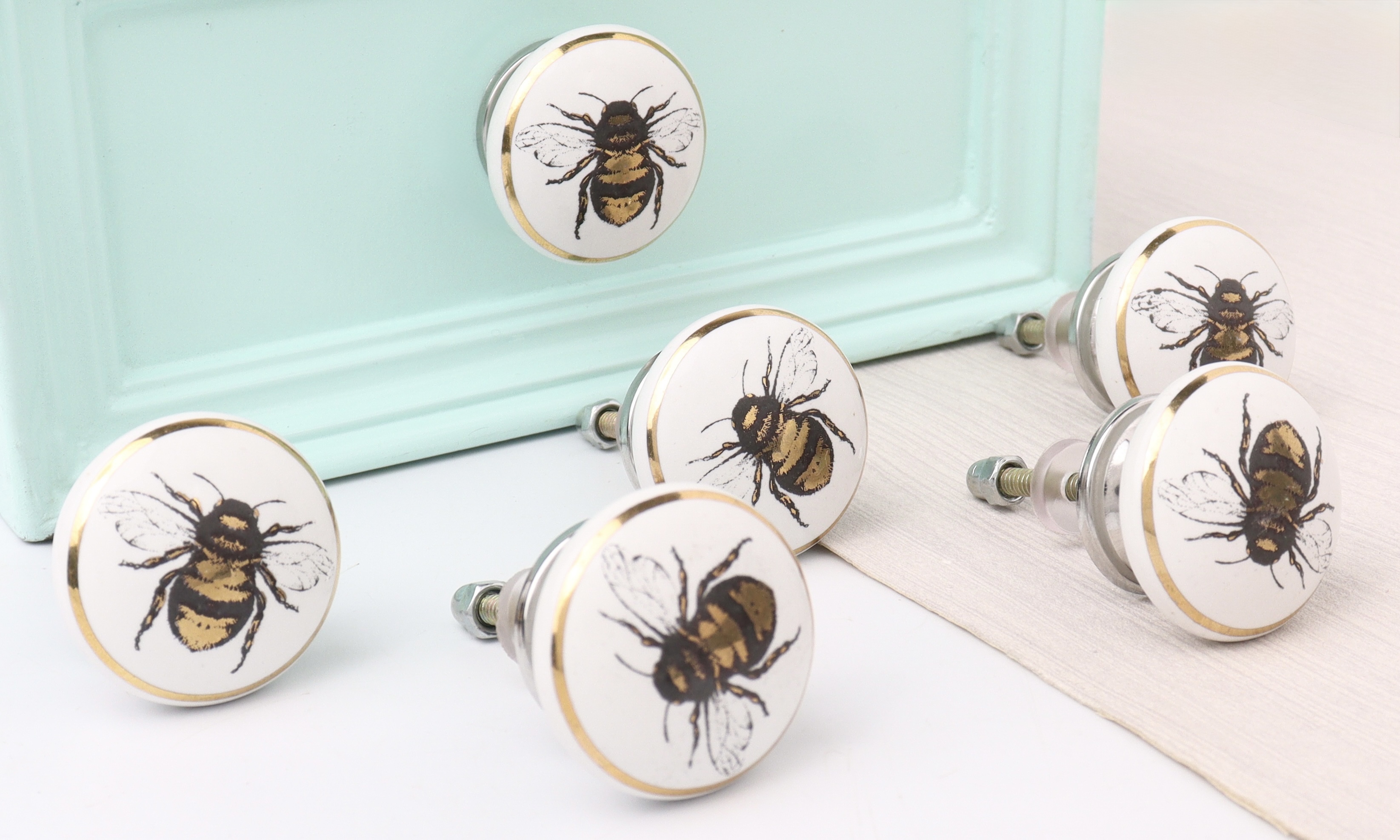 Whether your home is contemporary, rustic, or vintage-inspired, the Golden Bumble Bee Flat Ceramic Cabinet Knob will complement a variety of interior styles. Its subtle elegance and natural motif make it a versatile addition to your furniture.