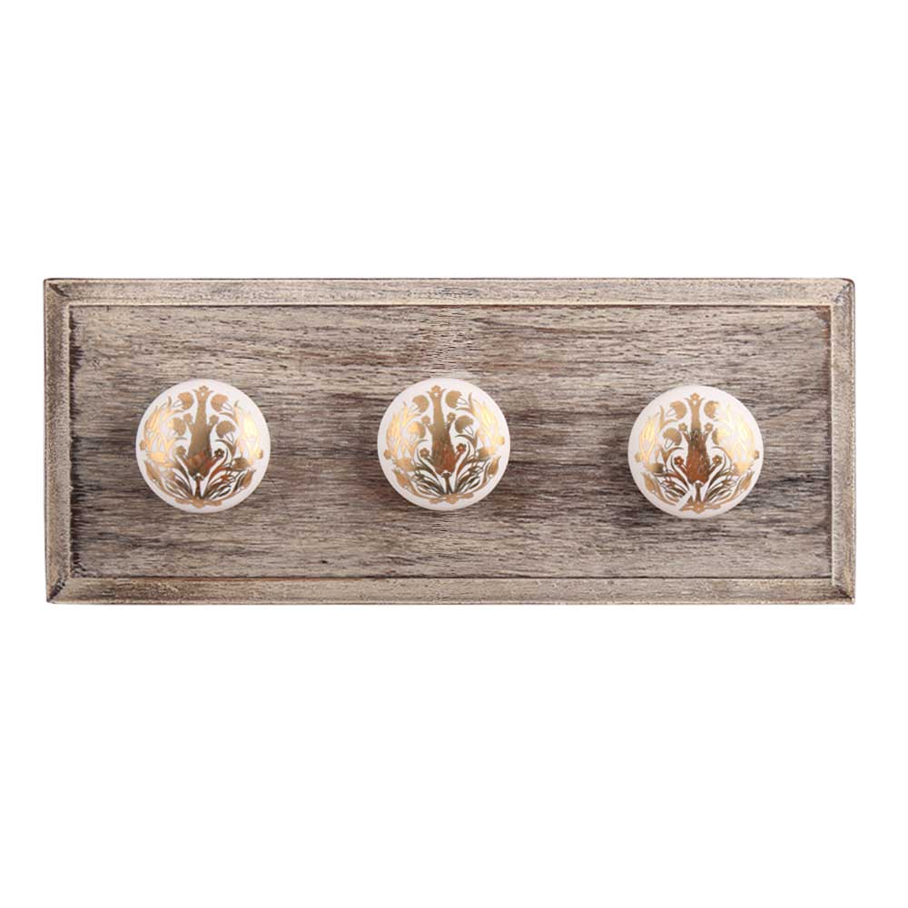 Golden Calla Lily Flower Flat Ceramic Wooden Hook. A Perfect Complement to the Soft Tone of the Wood are these White Traditional Hat Coat Hook Made of Genuine Porcelain and Brass. It can be use to Hang Jewellery, Leashes, Towels, Scarves, Light Weight Sweaters, Caps Etc.