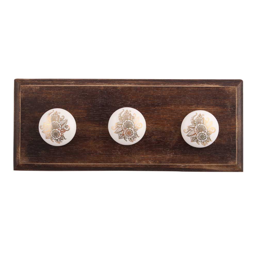 Golden Calliopsis Flower Flat Ceramic Wooden Hook. A Perfect Complement to the Soft Tone of the Wood are these White Traditional Hat Coat Hook Made of Genuine Porcelain and Brass. It can be use to Hang Jewellery, Leashes, Towels, Scarves, Light Weight Sweaters, Caps Etc.