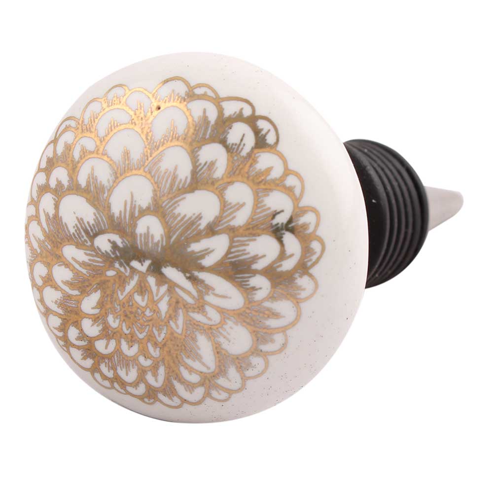 Golden Carnation Flower Flat Ceramic Wine Stopper