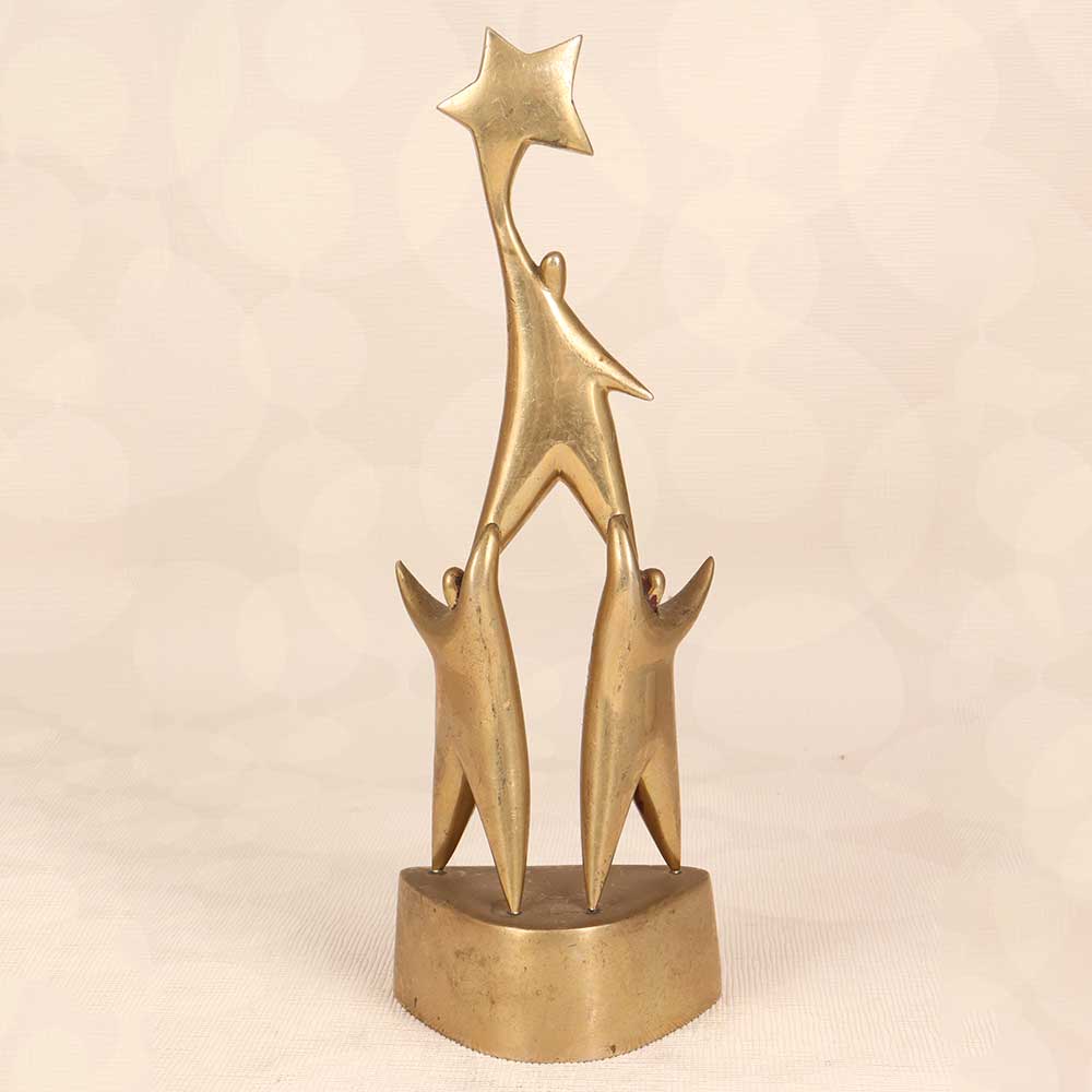 • Eye-catching design with three figures holding a star on top, made of high-quality brass with golden finish