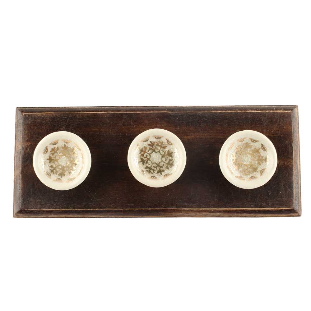 Golden Crackle Ceramic Wooden Hook. A Perfect Complement to the Soft Tone of the Wood are these White Traditional Hat and Coat Hook Made of Genuine Porcelain and Brass. It can be used to Hang Jewelry, Leashes, Towels, Scarves, Light Weight Sweaters, Caps etc.