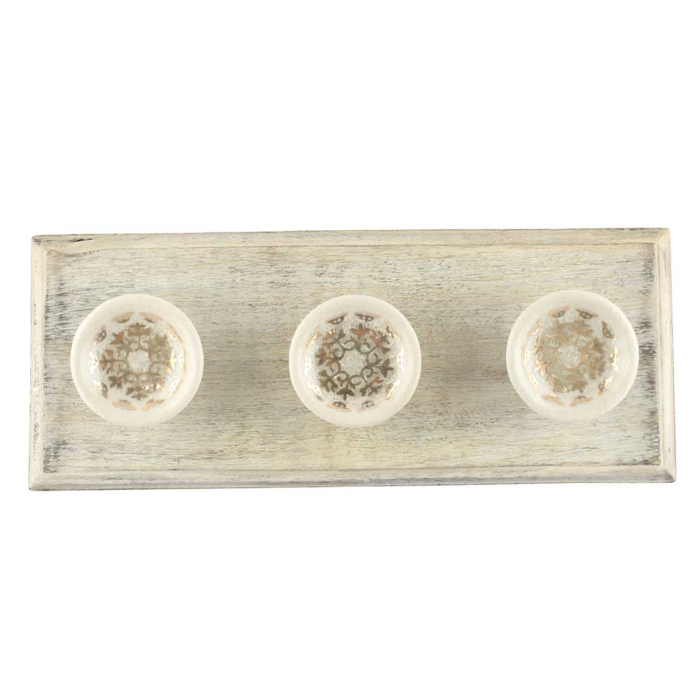 Golden Crackle Ceramic Wooden Hook. A Perfect Complement to the Soft Tone of the Wood are these White Traditional Hat and Coat Hook Made of Genuine Porcelain and Brass. It can be used to Hang Jewelry, Leashes, Towels, Scarves, Light Weight Sweaters, Caps etc.
